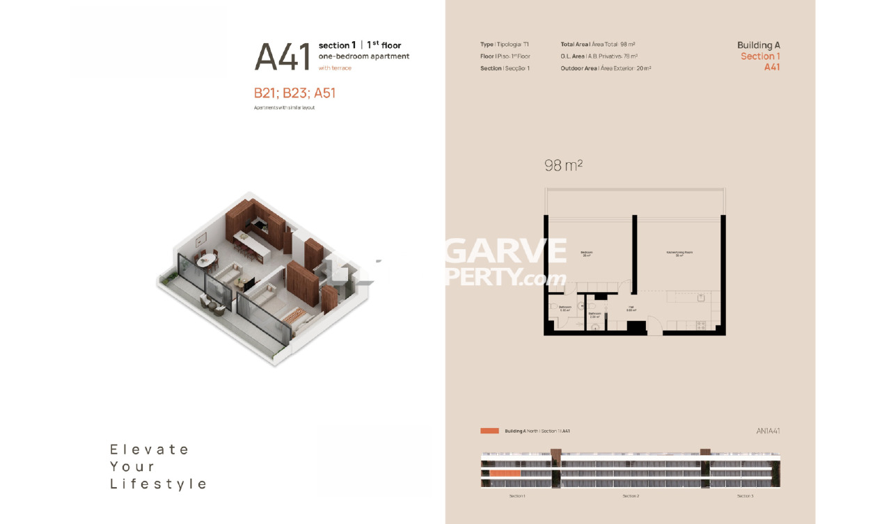 These beautifully designed 1-bedroom apartments in Carvoeiro offer the perfect blend of comfort, space, and privacy. Ideal for both personal use and investment, they are available with areas starting from 97,80 m² and prices from 415.000. Each unit provides exceptional indoor-outdoor living in one of the Algarves most sought-after coastal villages.