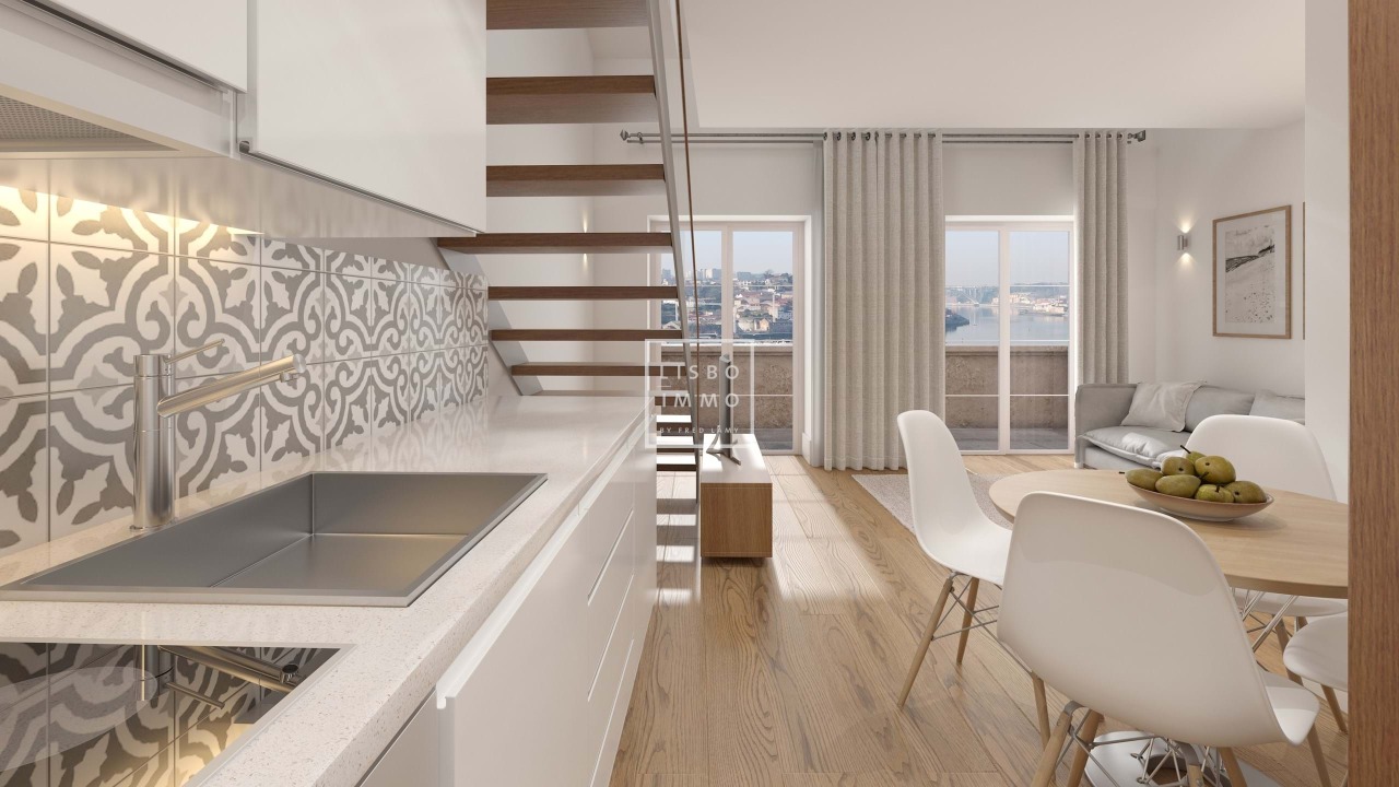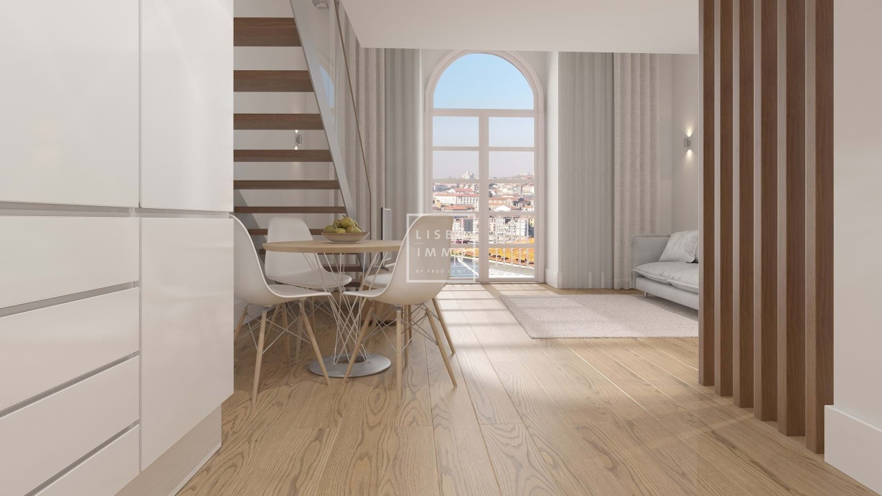 Apartment Loft of 54,02m2 with a terrace of 48,53m2, completely renovated, located in Porto located within walking distance of the main Porto attractions including, the Historic Center of Porto, the traditional Port Wine Cellars , Dom Luis I Bridge, the Se amongst other. The apartment include air-conditioning, double glass windows, fully equipped kitchens and may come fully furnished. Most of the units will have fantastic views over the Douro river and the city of Porto. The management company will provide to the clients the possibility of management services and renting rentability with a fixed return. The management company may be responsible for all the expenses including maintenance, condominium, water, electricity, internet, cable and insurance, among others. The historic city of Porto is one of the oldest cities in Europe. This exciting and vibrating city has surged in Europe as a main touristic destination due to its rich history, deep culture and a very singular nightlife. In 1996 the city center was elevated to the status of Unesco World Heritage. This region is also famous worldwide because of its wines, that are produced and stored along the banks of Douro River. The timeless elegance of the Building comes from a rehabilitation project of an 18th century Palace which preserves many of its unique architectural features. It is located in the banks of the Douro River with its facade facing south, allowing it to have great sun exposure and splendid views over the river and the city. The project is comprised of 2 autonomous buildings, the renovated Palace and a new structure, separated by an internal magnificent private garden. Within the renovated Palace, most units include mezzanines enhancing the original double height ceilings. The building is being modernized into 17 upscale residential units. The apartments vary between 41,18 and 148,35sqm, with studios, one-bedroom and two-bedroom units. The prices are between 356 800 to 612 080. All residential units can be sold completely decorated and furnished.