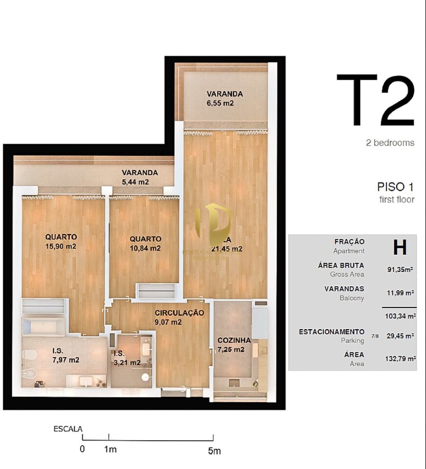 High quality finishes and large areas, balconies, kitchen equipped with Bosch appliances, 2 bedrooms being 1 bedroom en suite, 1 common bathrooms, hall, Air Conditioning, frames with thermal cut and double glazing, floating floor in the bedrooms and living room, false ceilings throughout the apartment, wardrobes in all rooms, video intercom system with access numeric keypad and high security doors.