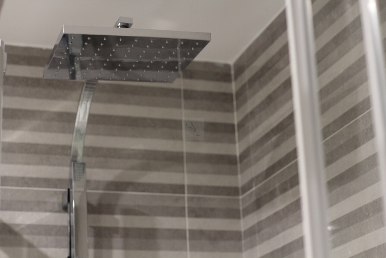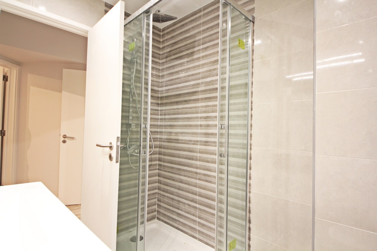 Complete bathroom, completely new, with "waterfall" shower and sanitary ware of contemporary design.