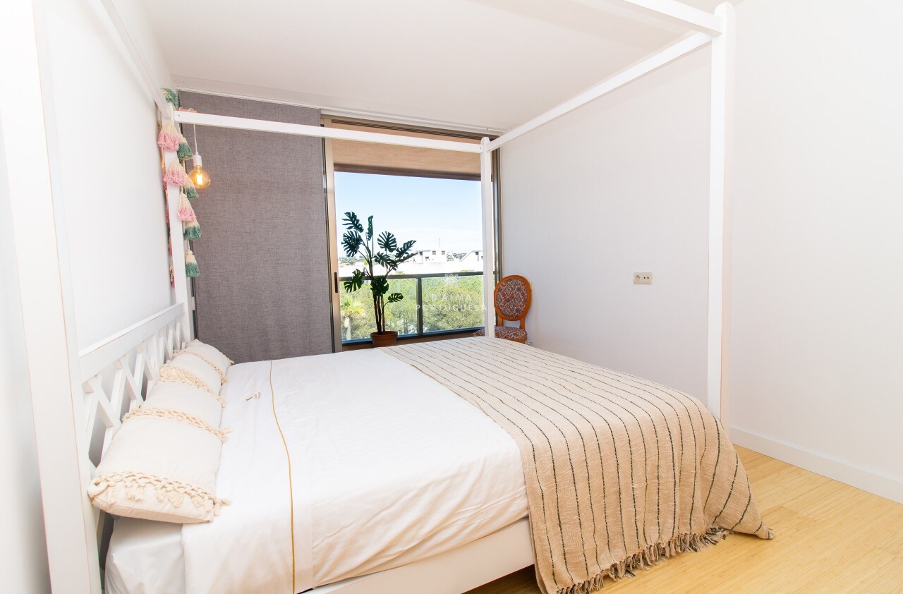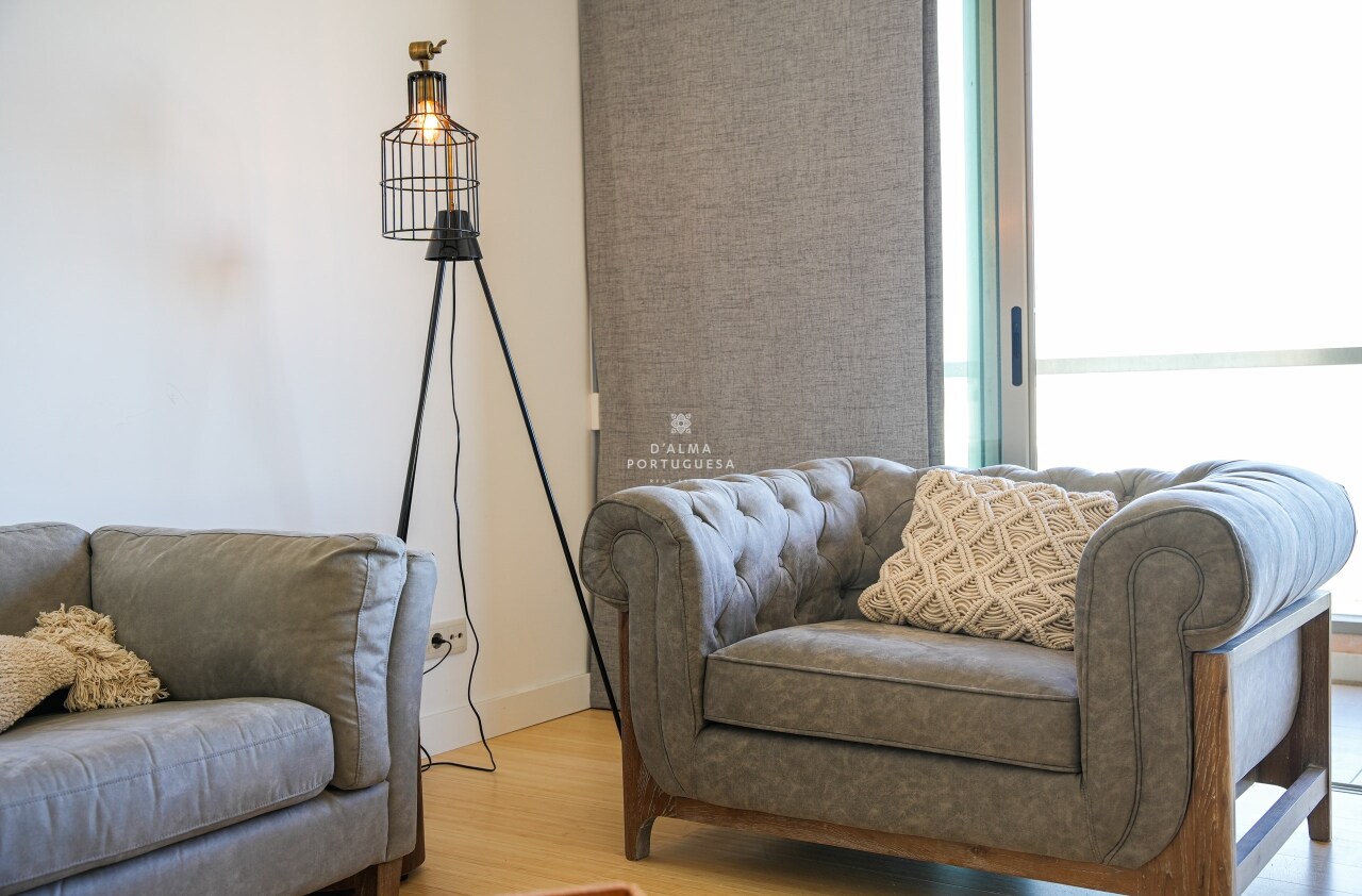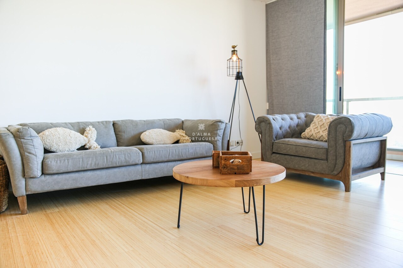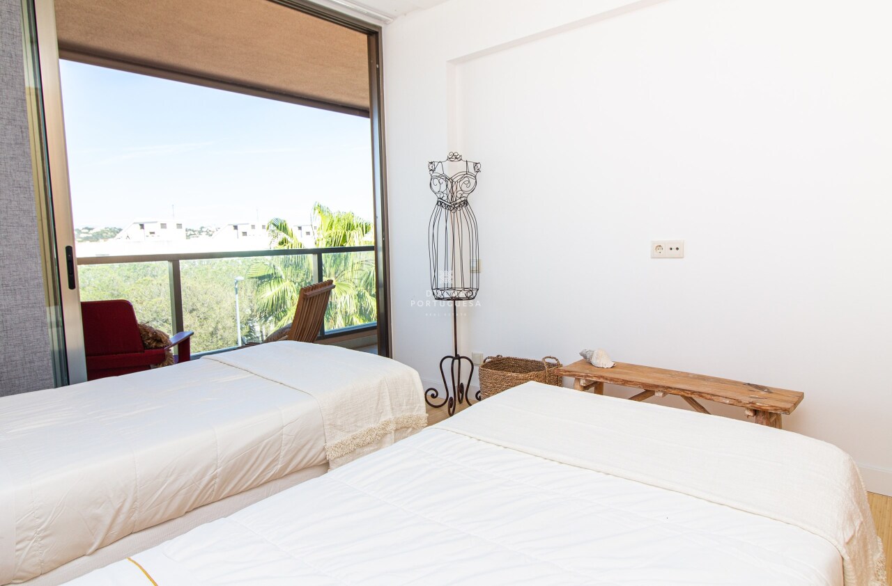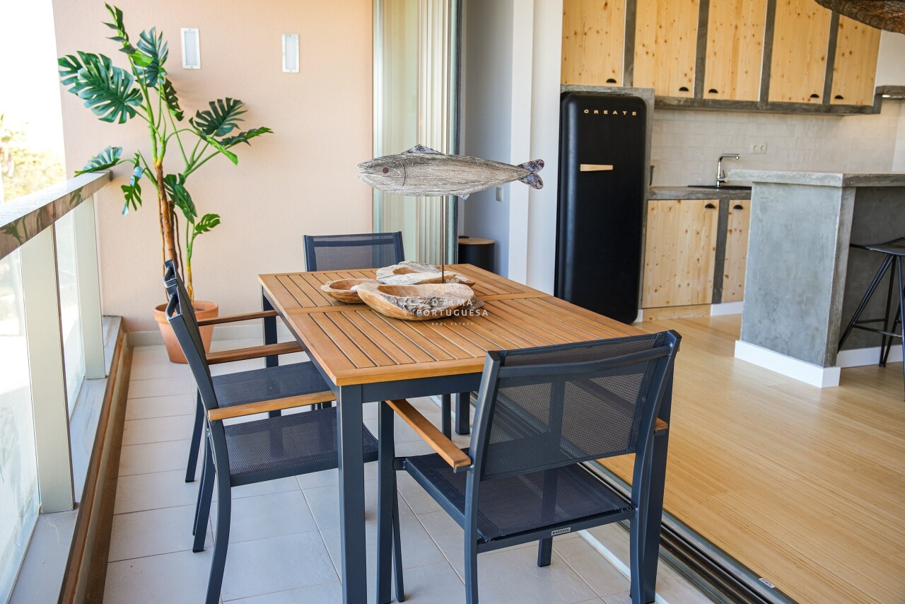 The living room, with its comfortable furnishings, is the perfect place to relax after a day on the golf course or on the golden sands of Salgados beach. Large sliding doors open onto the spacious balcony where you can take in stunning views of the golf course and listen to the soft murmur of the ocean waves in the distance.