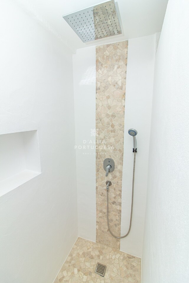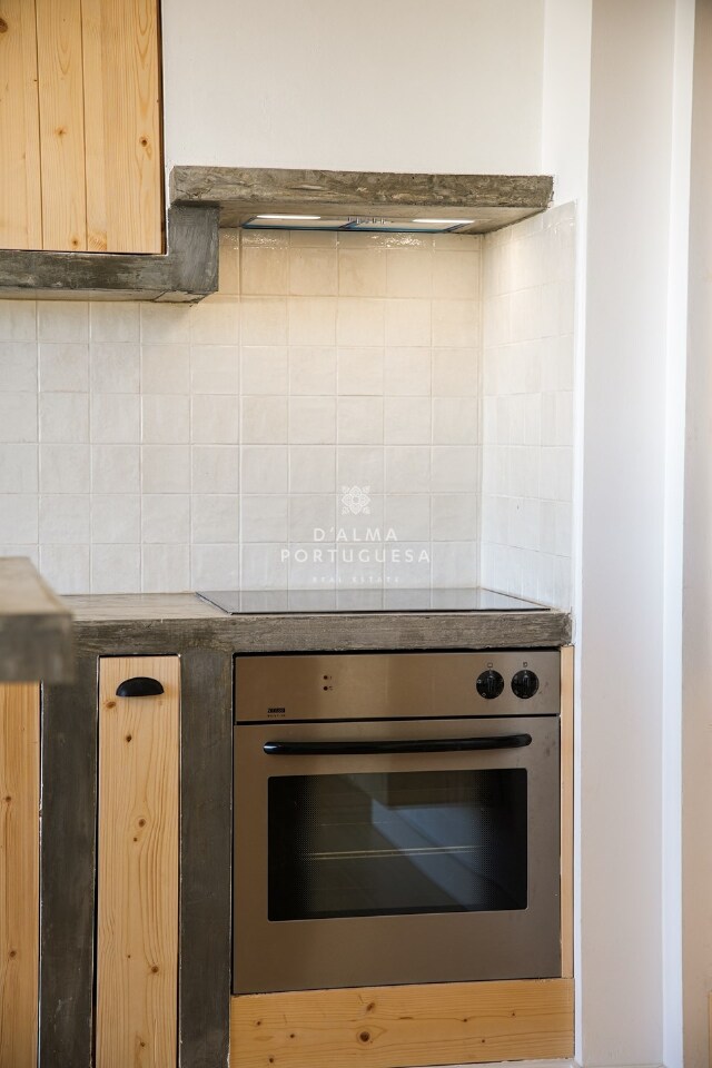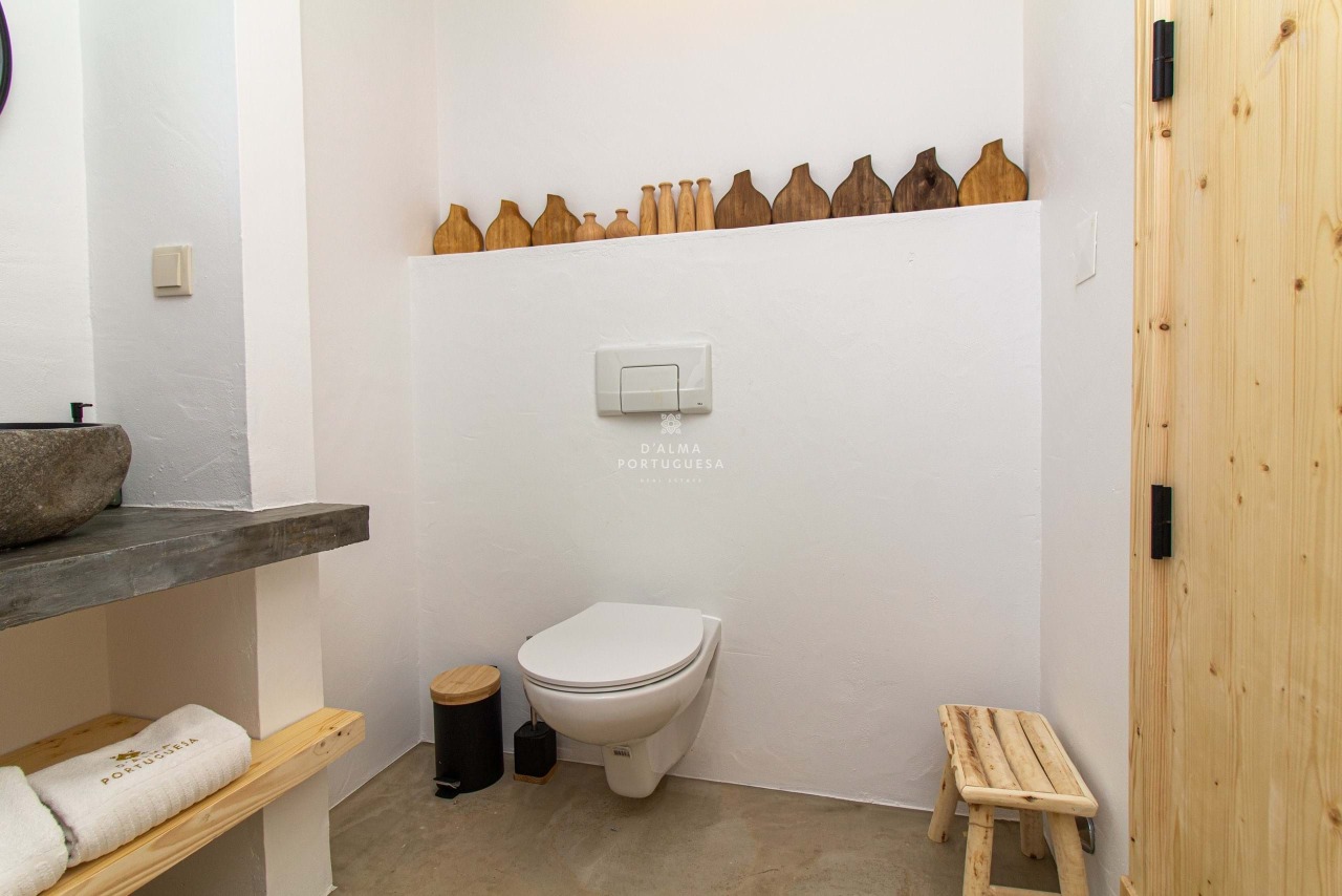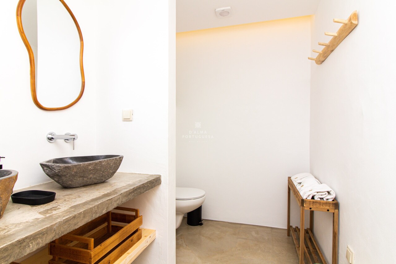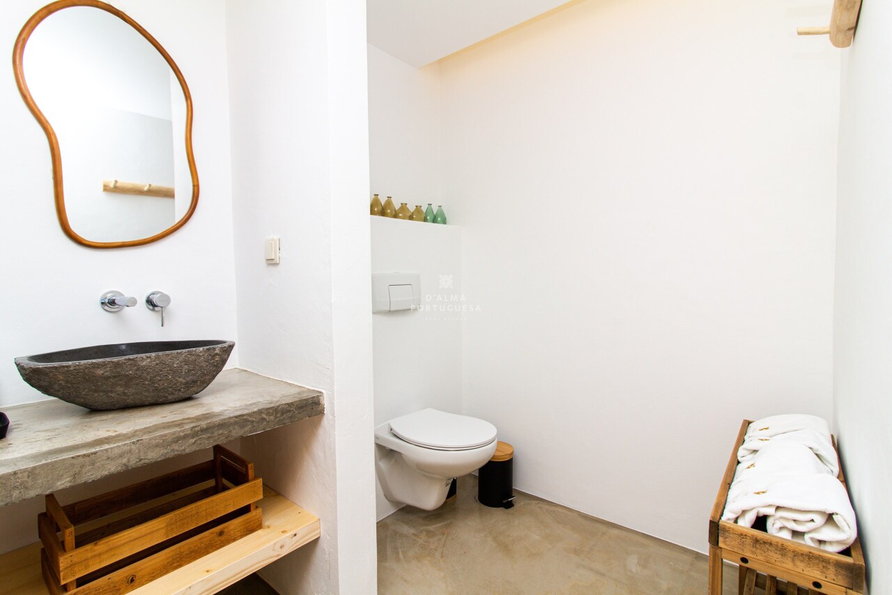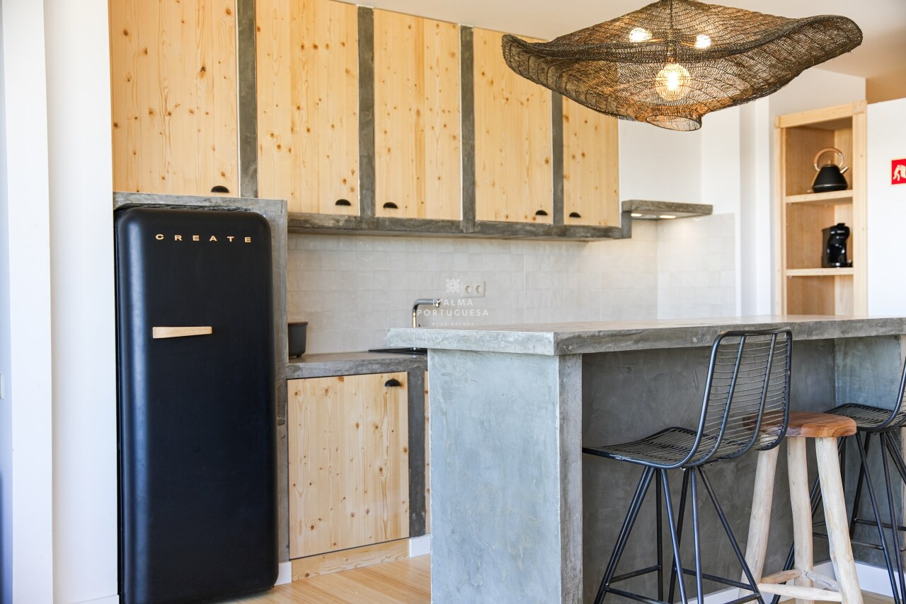 The microcement details on the countertops add an organic and modern texture, while the lime mortar on the walls of some spaces provides a feeling of freshness and authenticity in every corner.