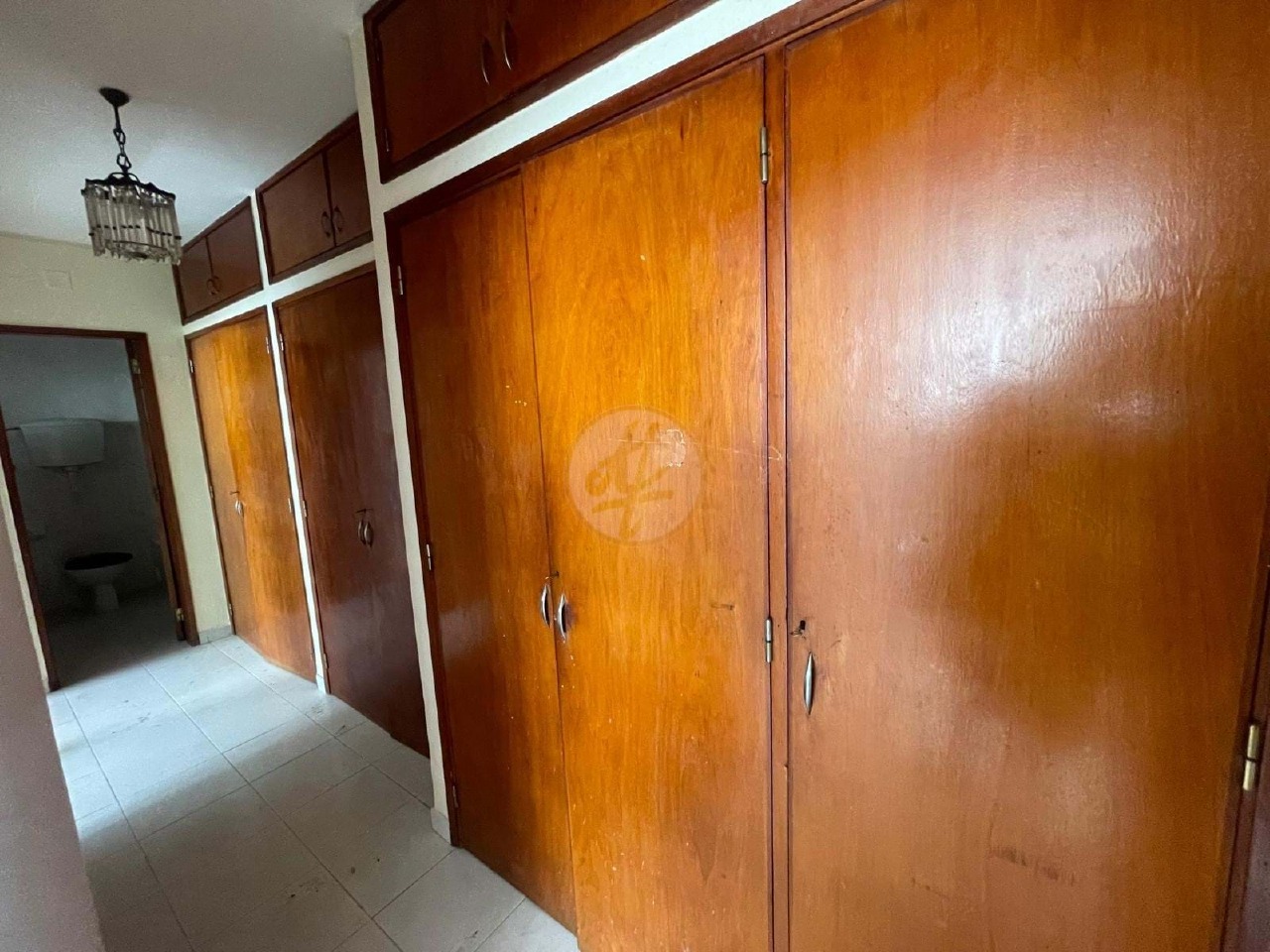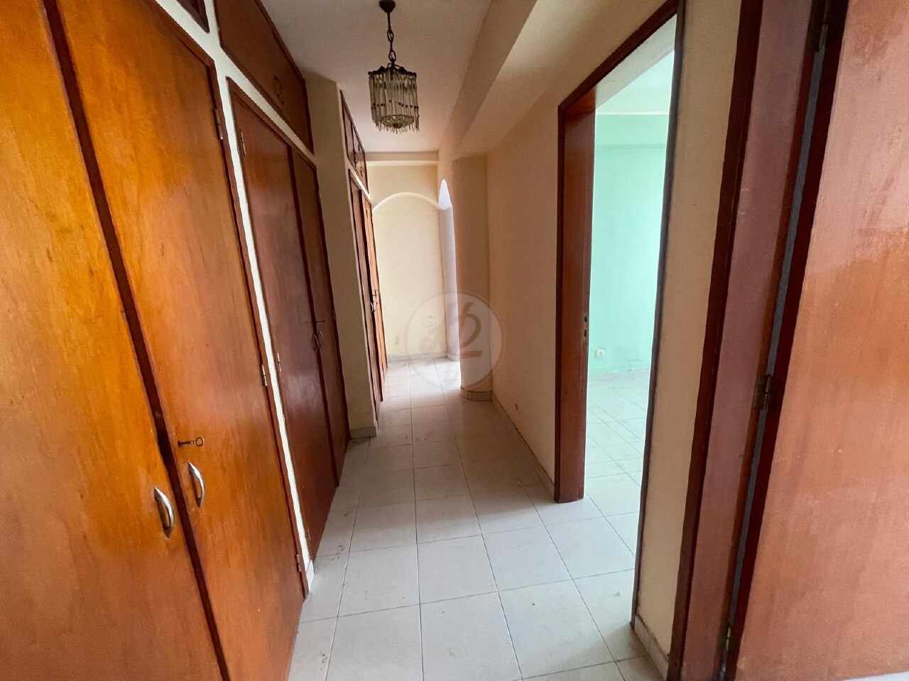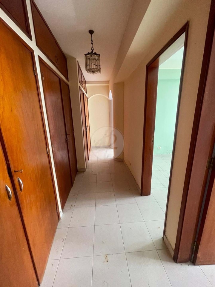 The open-plan kitchen and living dining room are bright and well-lit, thanks to the south-facing orientation, which provides plenty of natural light. The hallway has built-in cupboards, offering additional storage space. Although the apartment is in need of renovation, its enormous potential makes it an excellent investment.