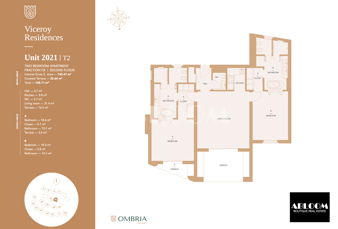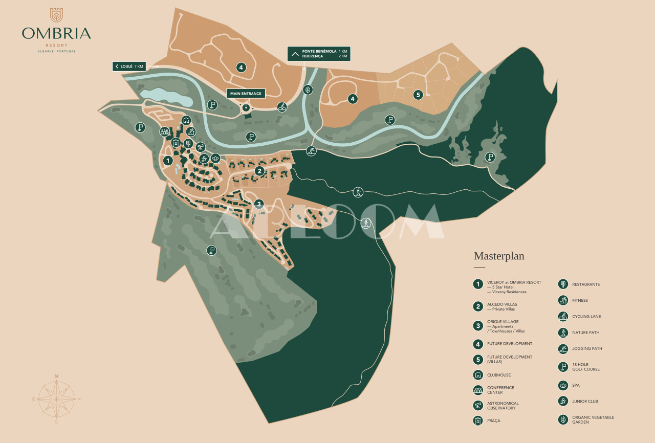 The Ombria Resort and Golf Course is sprawled across 153 hectares(378 acres) of pristine hills in the heart of the Algarve. The vision was to create an authentic Barrocal village where residents and vacation clients can enjoy the splendid weather and natural surroundings on a luxury resort designed, built and operated with the greatest respect for the environment and to boost the local economy. Construction of the Viceroy Residences should be completed by Autumn 2024.