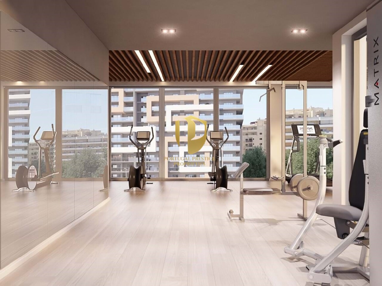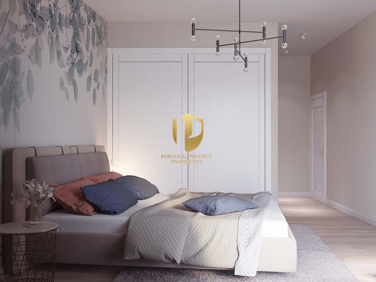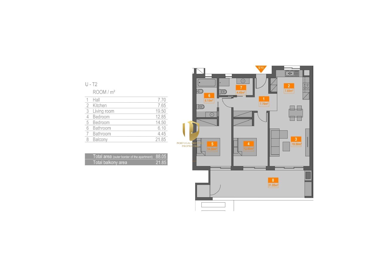 2 bedroom apartment with 109.90m2 gross area, bedroom with built-in wardrobe. The kitchen is equipped with all appliances, ready to work and in common area with the living room. The balcony is of ample space namely with 21,85m2 and has access by the living room and bedrooms.