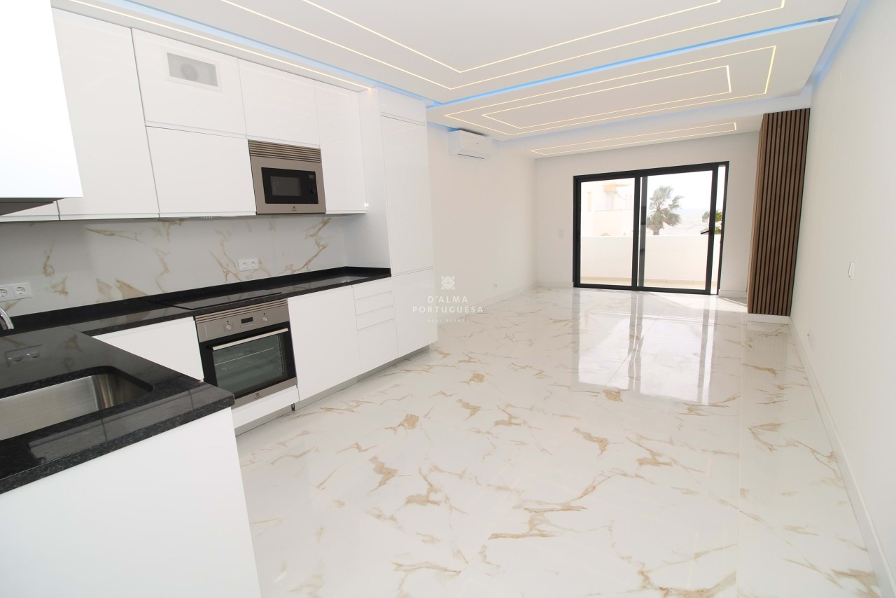 Enjoy the best that the city of Quarteira has to offer in this renovated apartment with sea view for sale. It consists of entrance hall, open space kitchen with the living dining room, which have access to a south-facing balcony with an excellent sea view. It has two bedrooms, one of which is en-suite. To complete the interior, it has a guest bathroom and a storage room. The apartment has been fully renovated with quality materials and for greater comfort air conditioning has been installed in the various rooms. In the basement area there is a parking space and a generous storage room, which can be accessed by elevator. This property combines charm and comfort in a central location, right in front of the beach. The ideal place to enjoy all that the Algarve has to offer. Don't miss the opportunity to purchase this property and enjoy all the comfort and convenience it offers. Contact us today to arrange a viewing! - REF: CA25-243