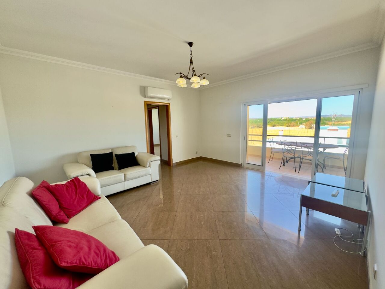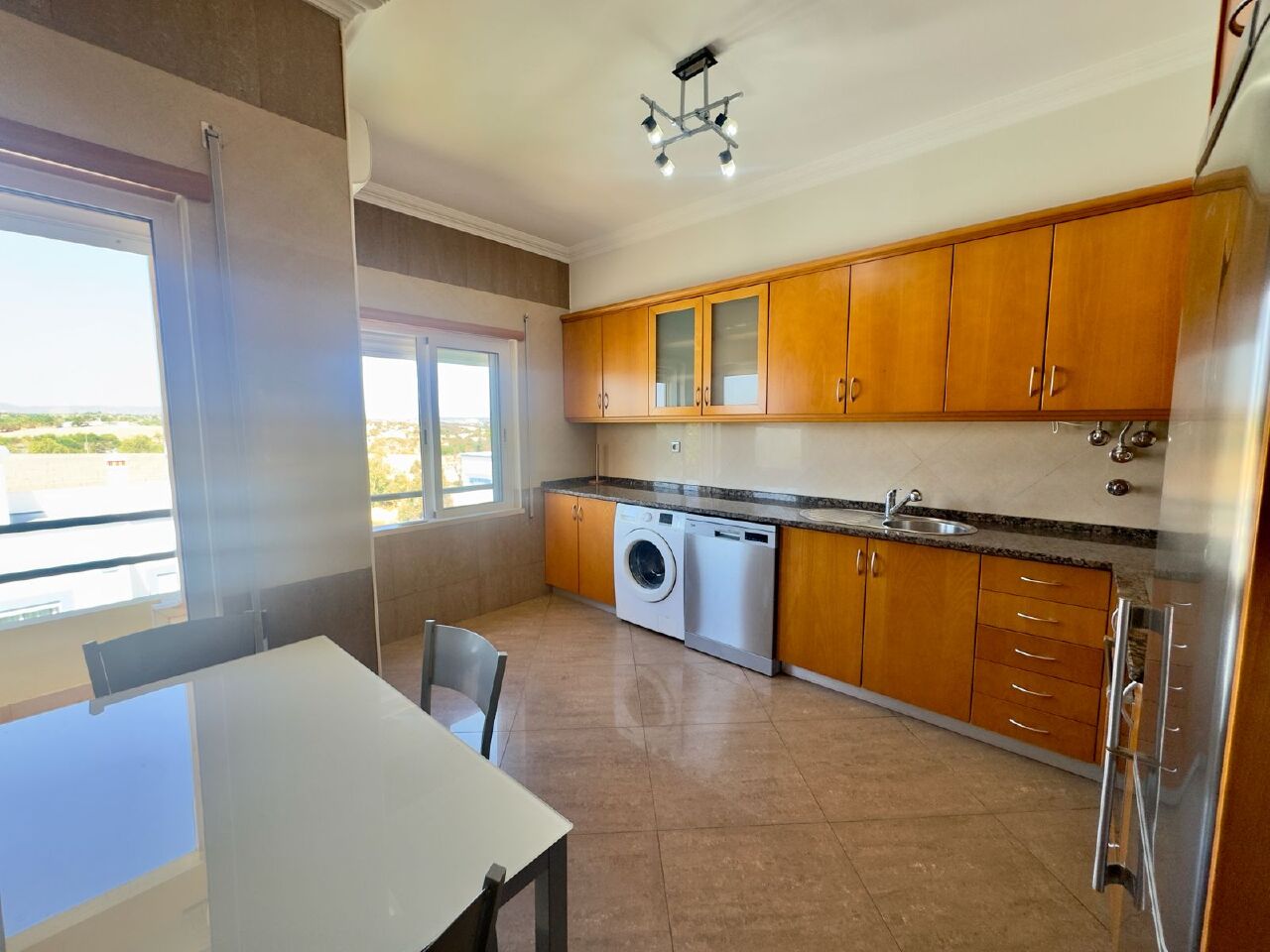 Details: * Tavira * Mato Santo Espirito * lively, yet quiet and green residential area * 2 bedrooms * 1 family bathroom * living room with dining area * fully fitted and equipped kitchen * balconies with open view * built-in wardrobes * double glazing * security shutters * air-conditioning * elevator * private roof terrace * private underground parking space with store room * CCTV *