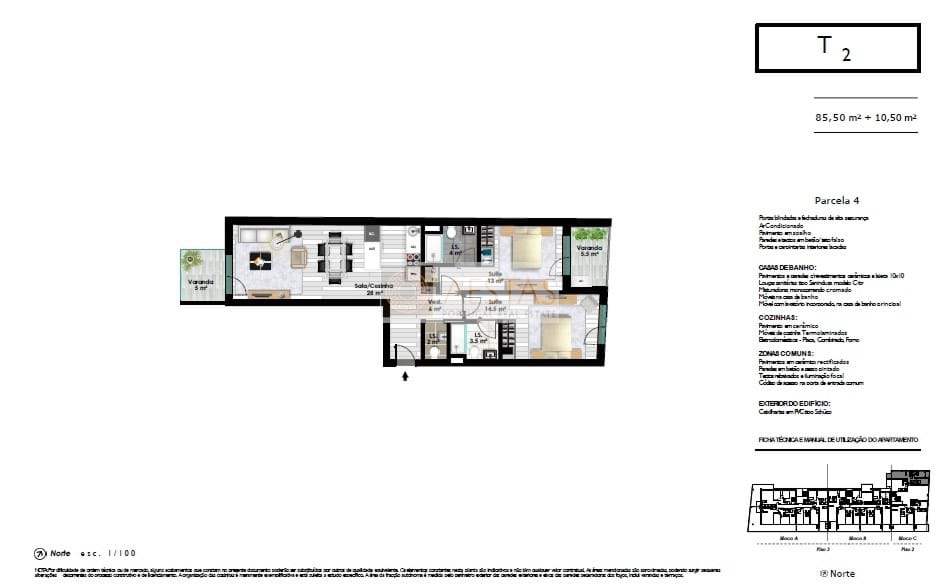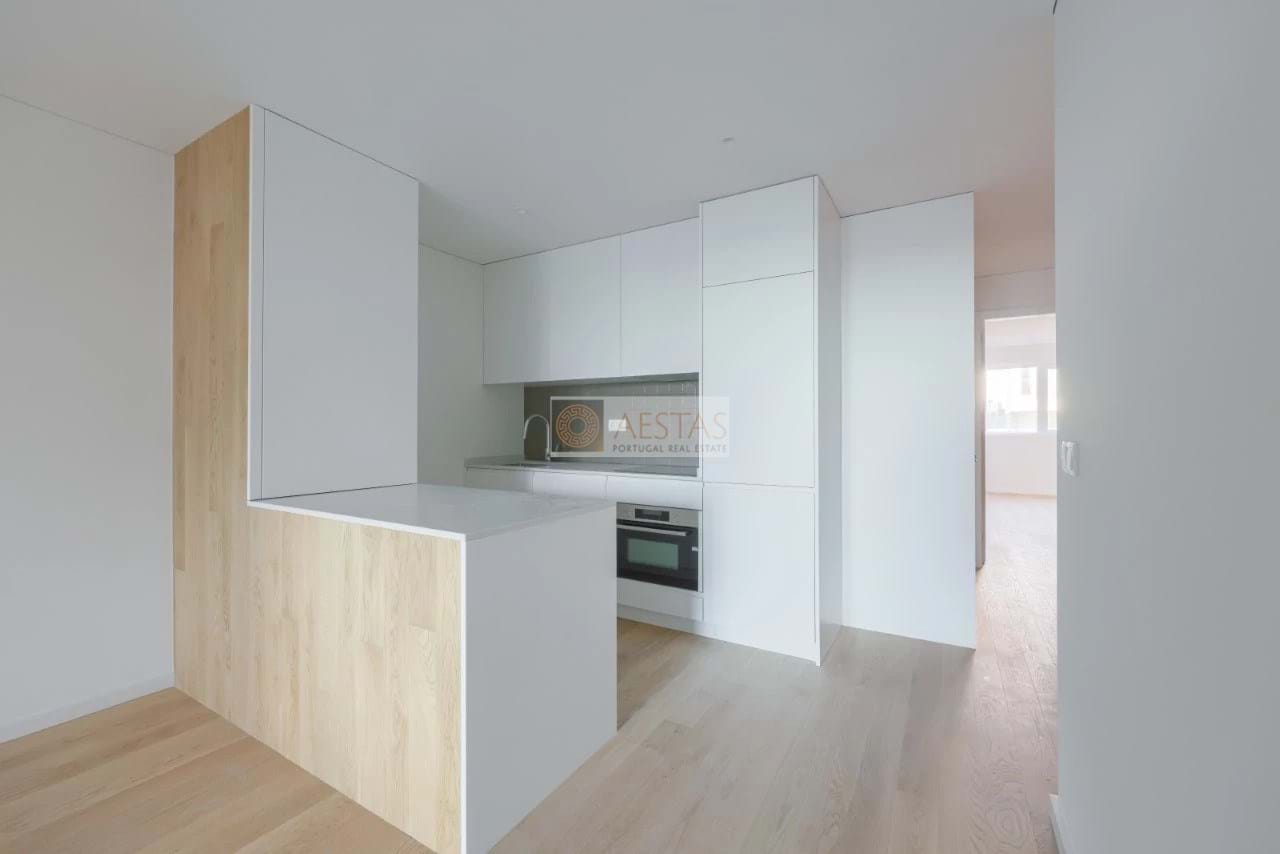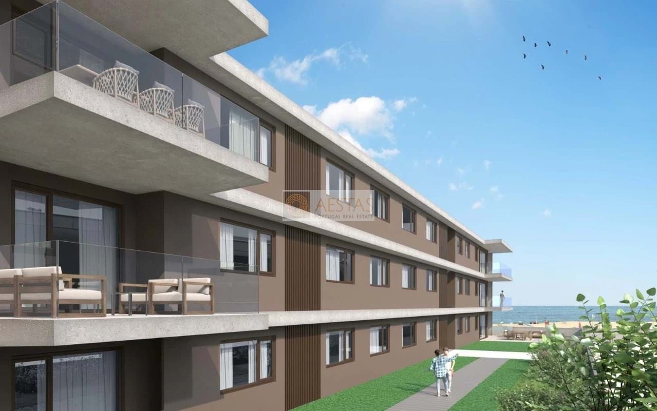 New 2 bedroom apartment, located in a development on the 1st line of the beach, in Canidelo, Vila Nova de Gaia, with excellent finishes, comprising living room and fully equipped kitchen in open space, with access to the balcony with sea view, 1 bathroom , 2 en-suite bedrooms and 1 parking space.