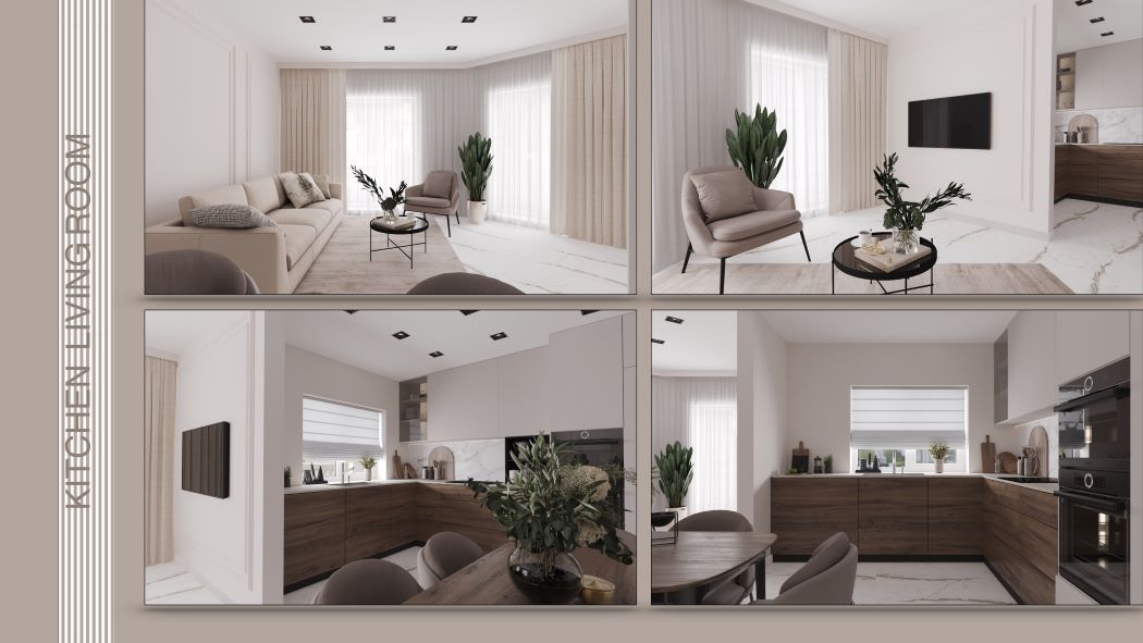 The second-floor apartments feature open-plan living spaces designed to maximize comfort and natural light. The living room, dining area, and kitchen flow together seamlessly, creating a perfect setting for entertaining or relaxing with family.