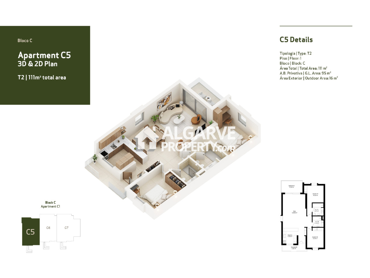 Each apartment spans a total of 111m², including 95m² of refined indoor living space and a 16m² private outdoor area. The open-plan layouts feature bright living and dining rooms seamlessly connected to fully equipped modern kitchens. Both bedrooms are spacious, filled with natural light, and include built-in wardrobes. Elegant bathrooms with wood accents and underfloor heating add a touch of warmth and luxury.