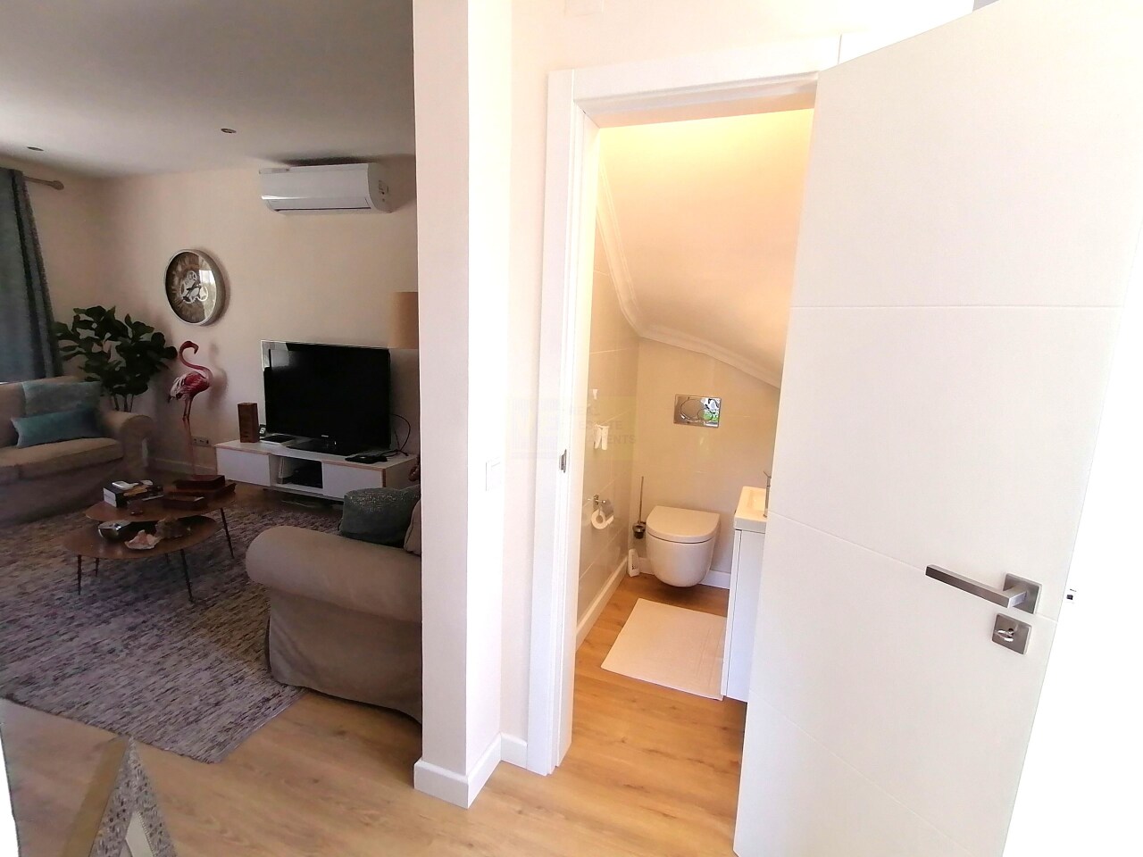 It has 2 bedrooms on the first floor resulting from a use of a balcony space that has been completely integrated into the housing area. The modern-style kitchen was suitable for the space resulting in a very pleasant work area, entirely new furniture as well as the coating of the walls.