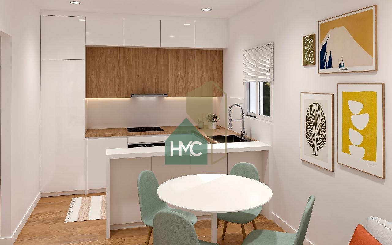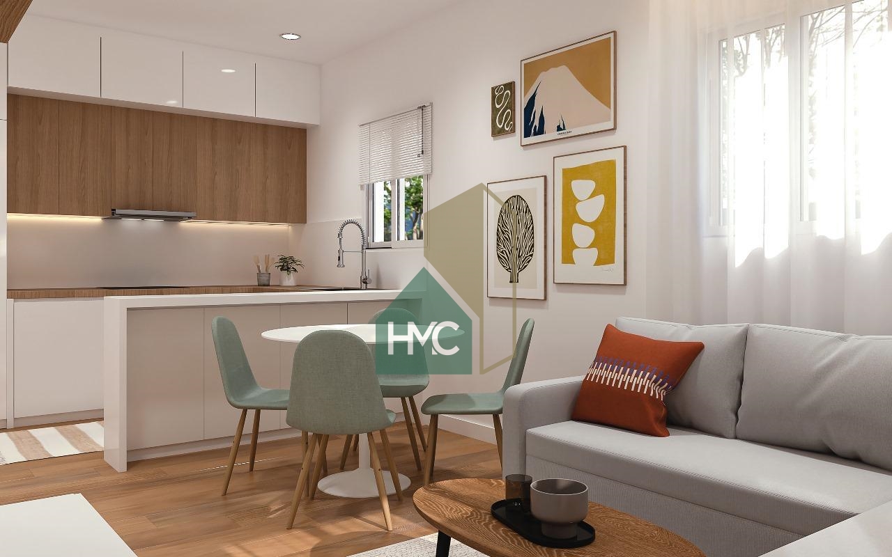 Open-plan living room and kitchen, with pre-installation of air conditioning