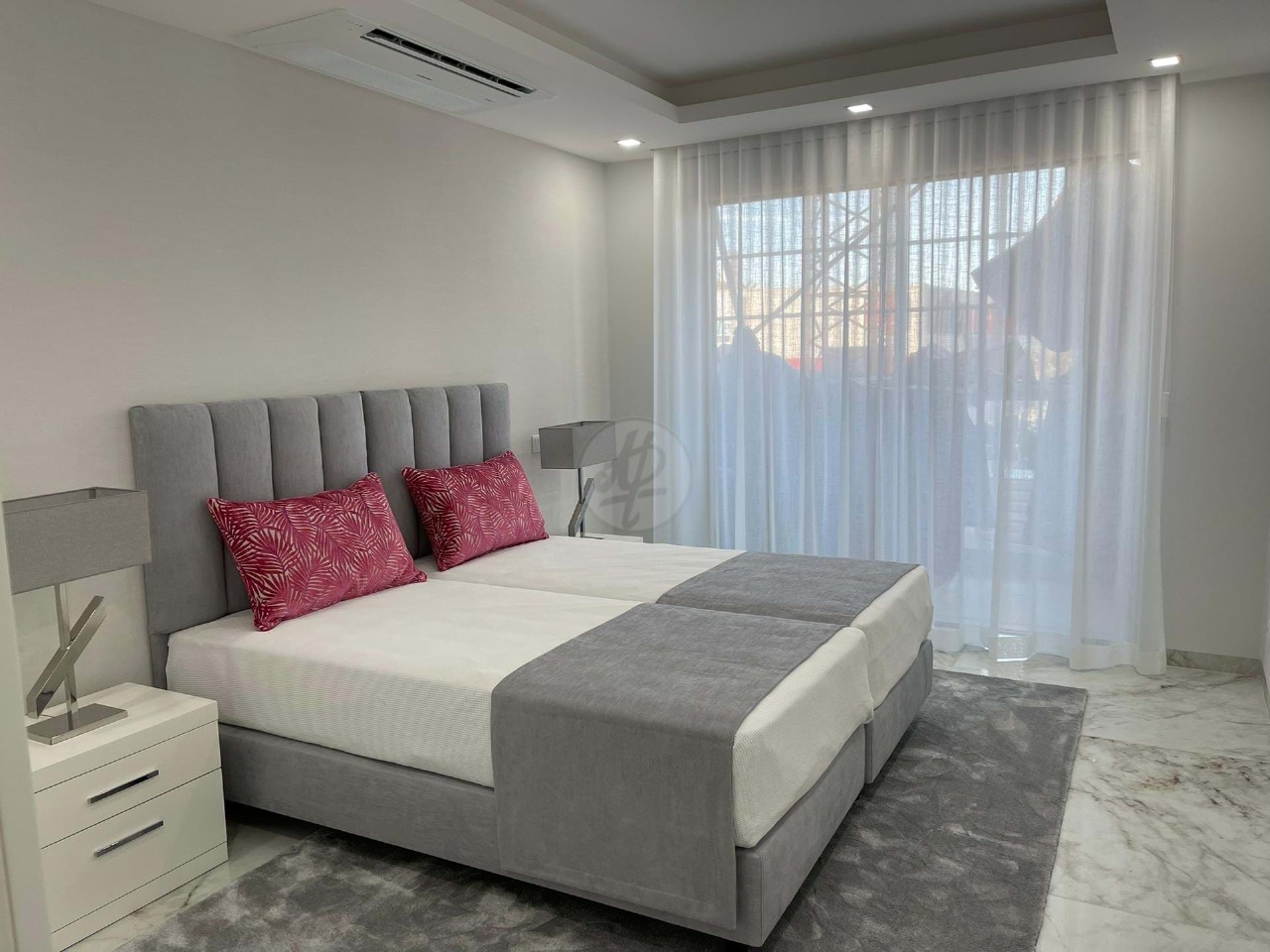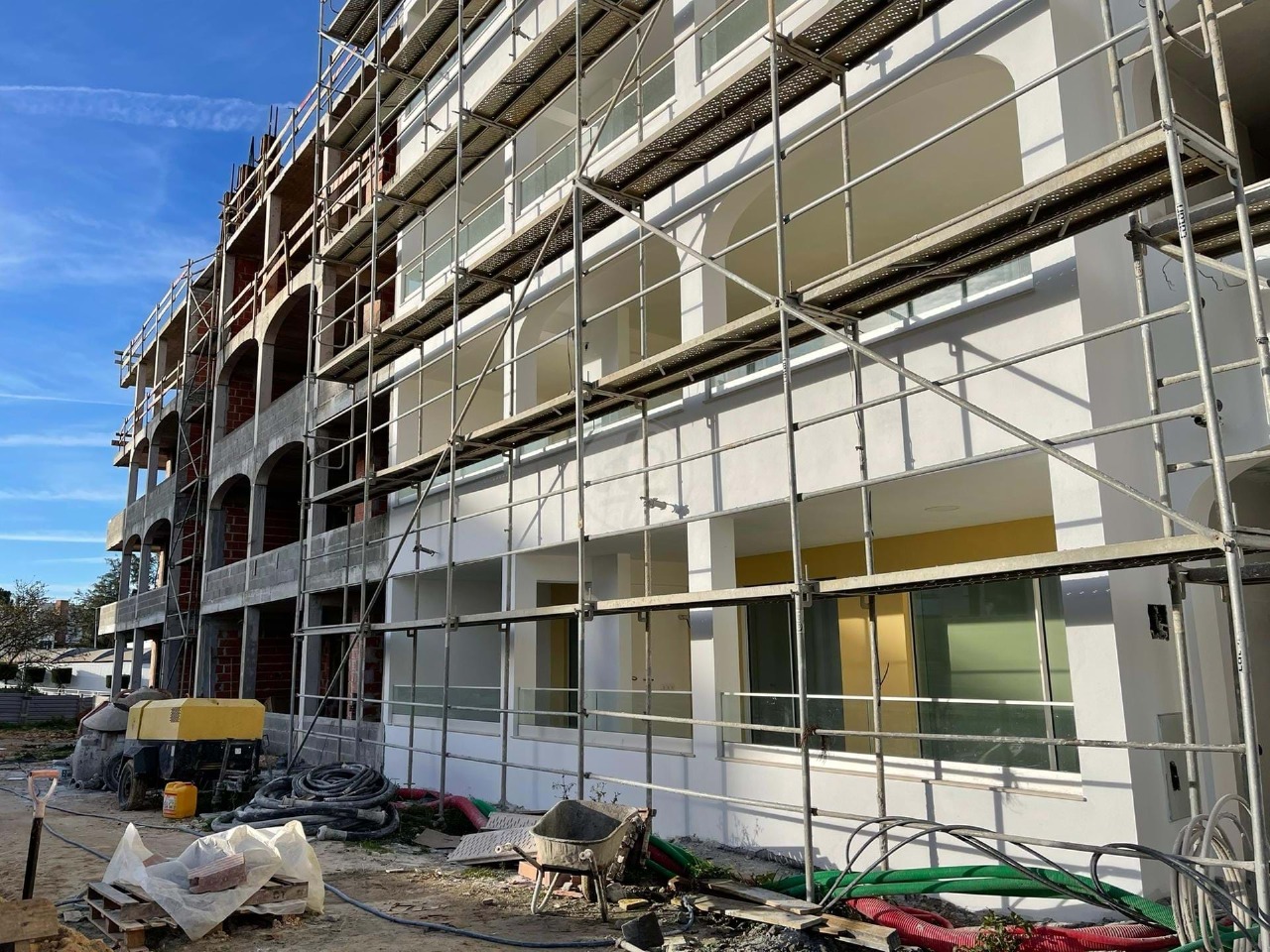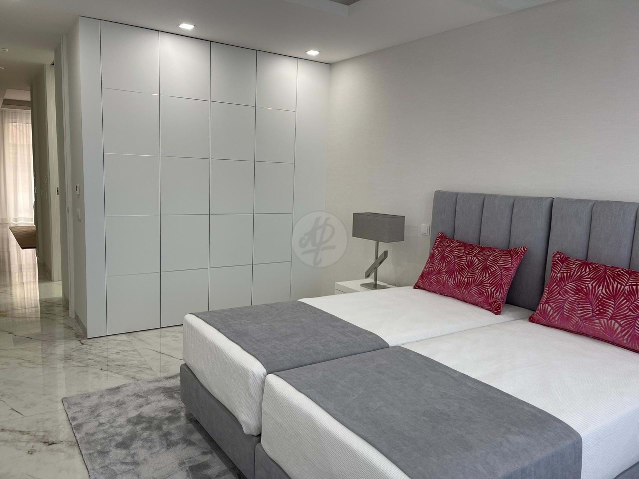 Luxurious apartments with 3 bedrooms and 2 bathrooms, in a private condominium, surrounded by lush gardens. With communal swimming pool on the terrace with automatic cover and pre installation of heating, solar panels, prepared parking for electric cars and some have private storage. Located in the upper part of the city, central to everything. A short walk distance from the city center and the Porto de Mós beach. Some of these spectacular apartments are already being finished. Modern, fully equipped, home automation.