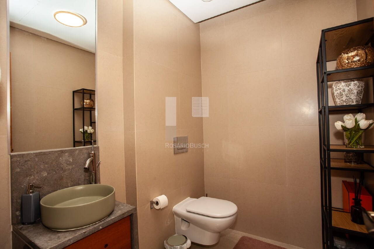 Also on the entrance hall there is a private lift which leads to the basement with a private garage space plus a buggy parking space and two storage rooms.