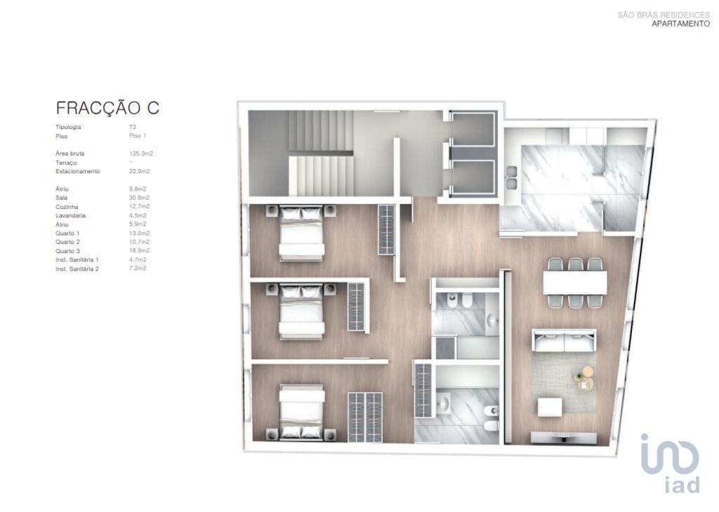 New Apartment T3 of 116, 20 m2 of util area, in a residential area located in the street of São Brás in the heart of Porto.