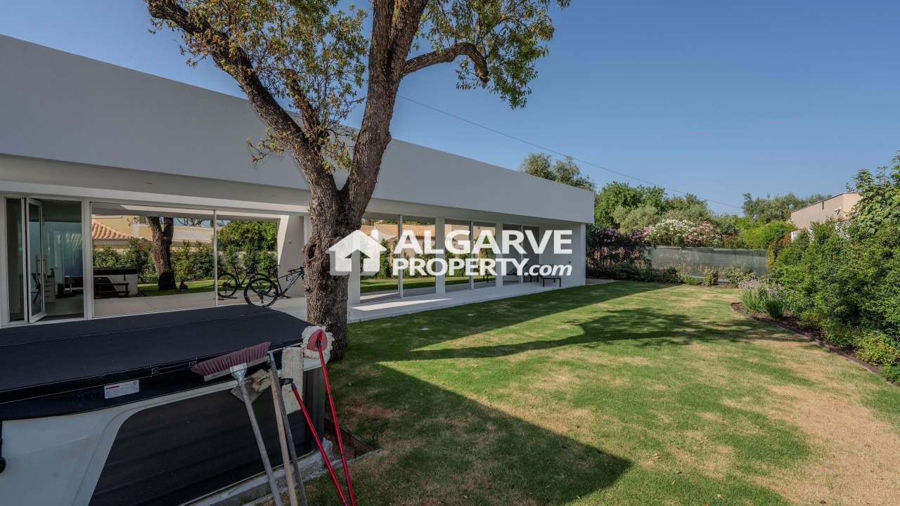 This single storey villa has a beautiful and meticulously designed garden features drought-resistant plants, creating a low-maintenance yet visually stunning outdoor space. The manicured lawn invites you to bask in the warm Portuguese sun. There's the possibility to build a swimming pool.