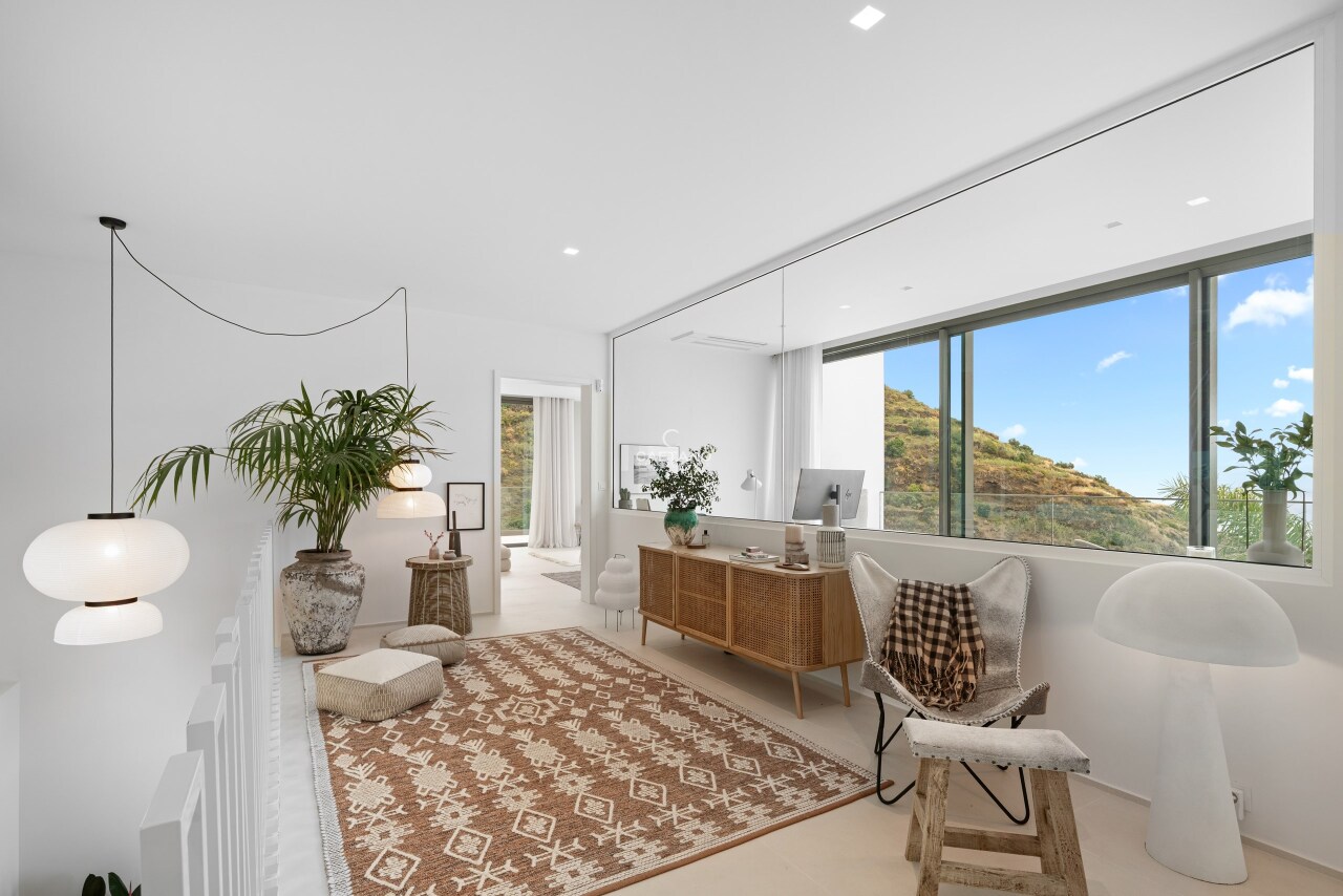 The villa features three spacious bedrooms, each with its own en-suite bathroom and breathtaking sea views. The master suite elevates this sense of luxury even further with a walk-in closet and a private balcony overlooking the lush valley and endless ocean horizon.