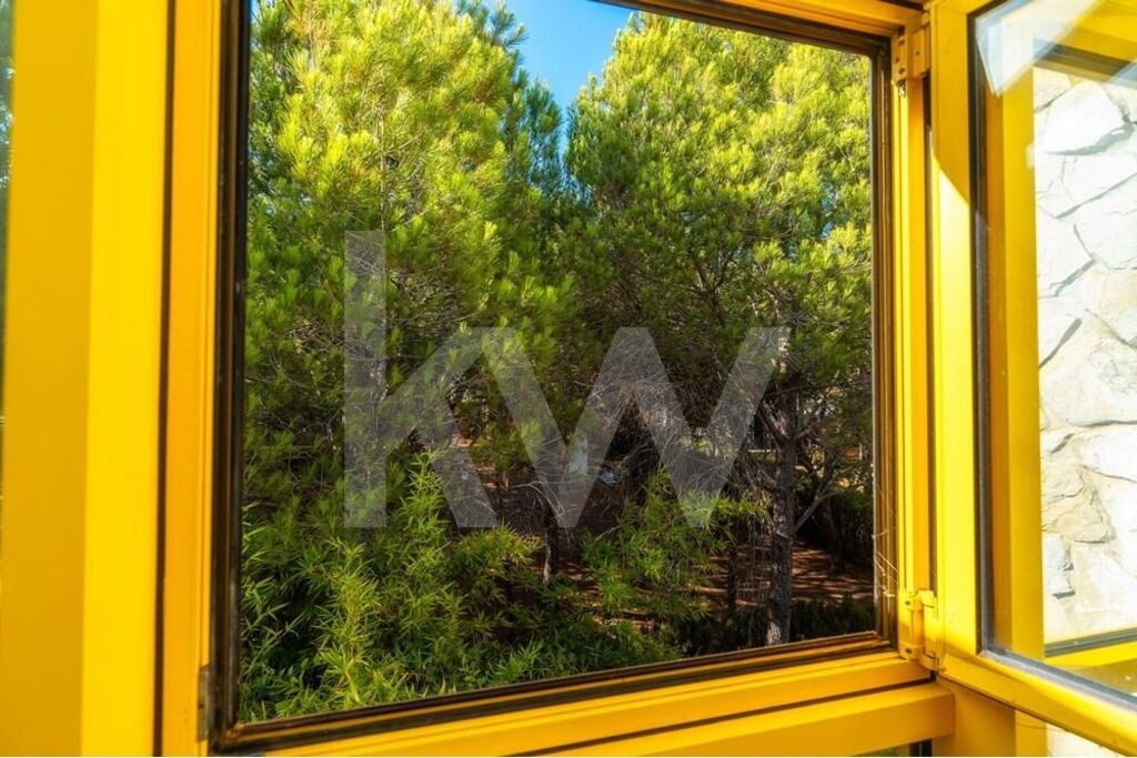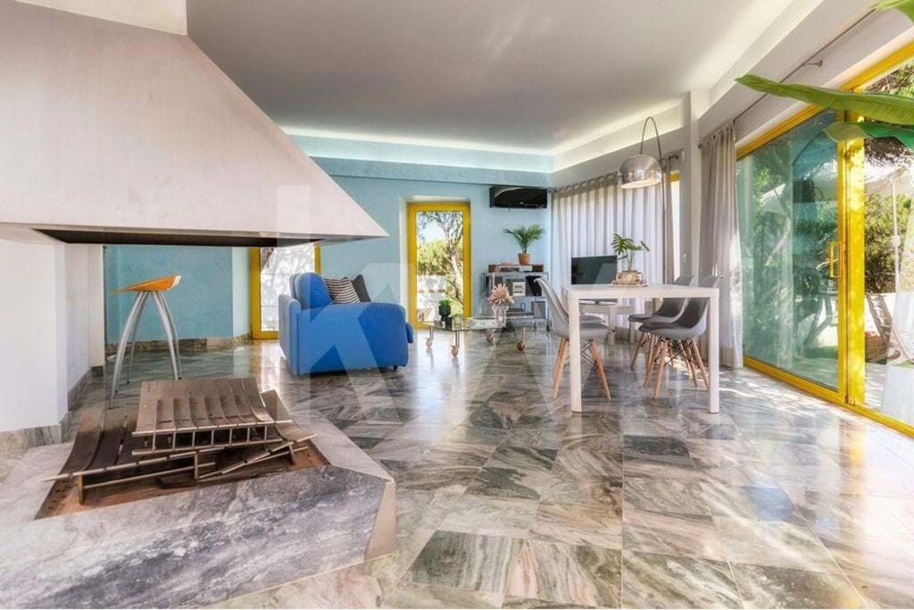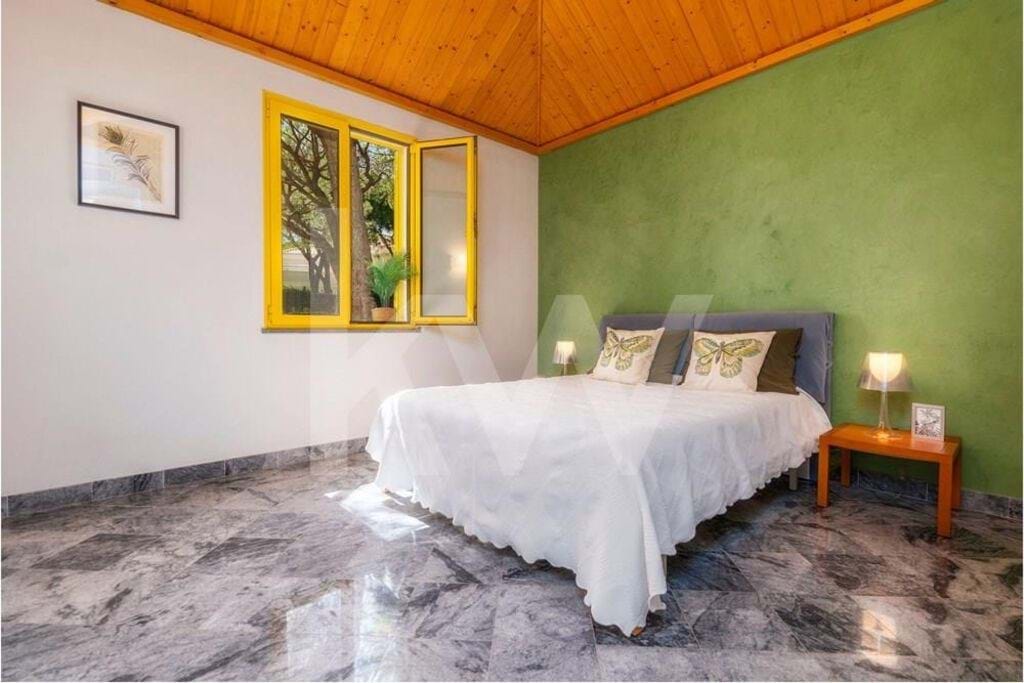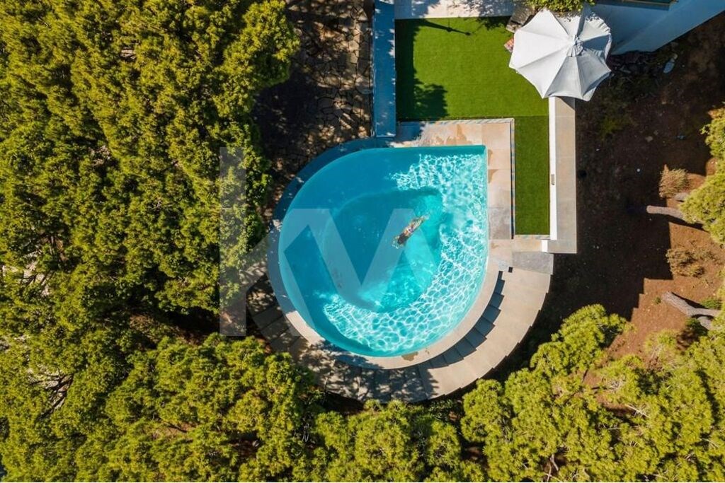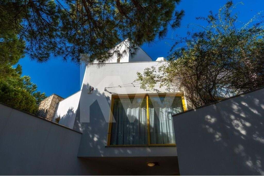 Upon entering the villa we have a generous and spacious entrance hall, which separates the social and rest area, on the first floor we have three en suite bedrooms, and access to the garage from the inside, the living and dining room with fireplace has large windows overlooking the garden pool and giving access to the outside, equipped and furnished kitchen, barbecue and a support kitchen on the top floor of the villa, where there is a terrace with sea views, perfect for enjoying meals outside.The garage of the villa is equipped with a bathroom.