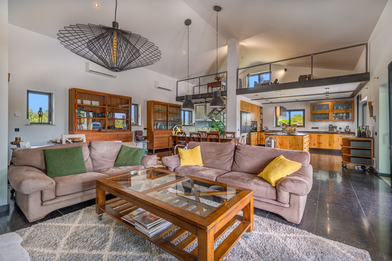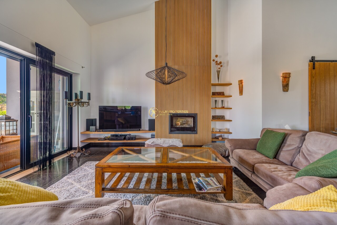 Facing south, the villa offers a large covered terrace and a heated saltwater infinity pool with an electric solar cover, as well as pre-installation for an outdoor kitchenperfect for leisure and entertaining. The grounds feature mature gardens and low-maintenance trees, including fig, olive, almond, oak, and carob trees, with automatic irrigation and newly planted fruit trees. The property also includes five hot water panels, 24 photovoltaic solar panels connected to five batteries, a borehole, a 30,000-litre cistern, and a septic tank.