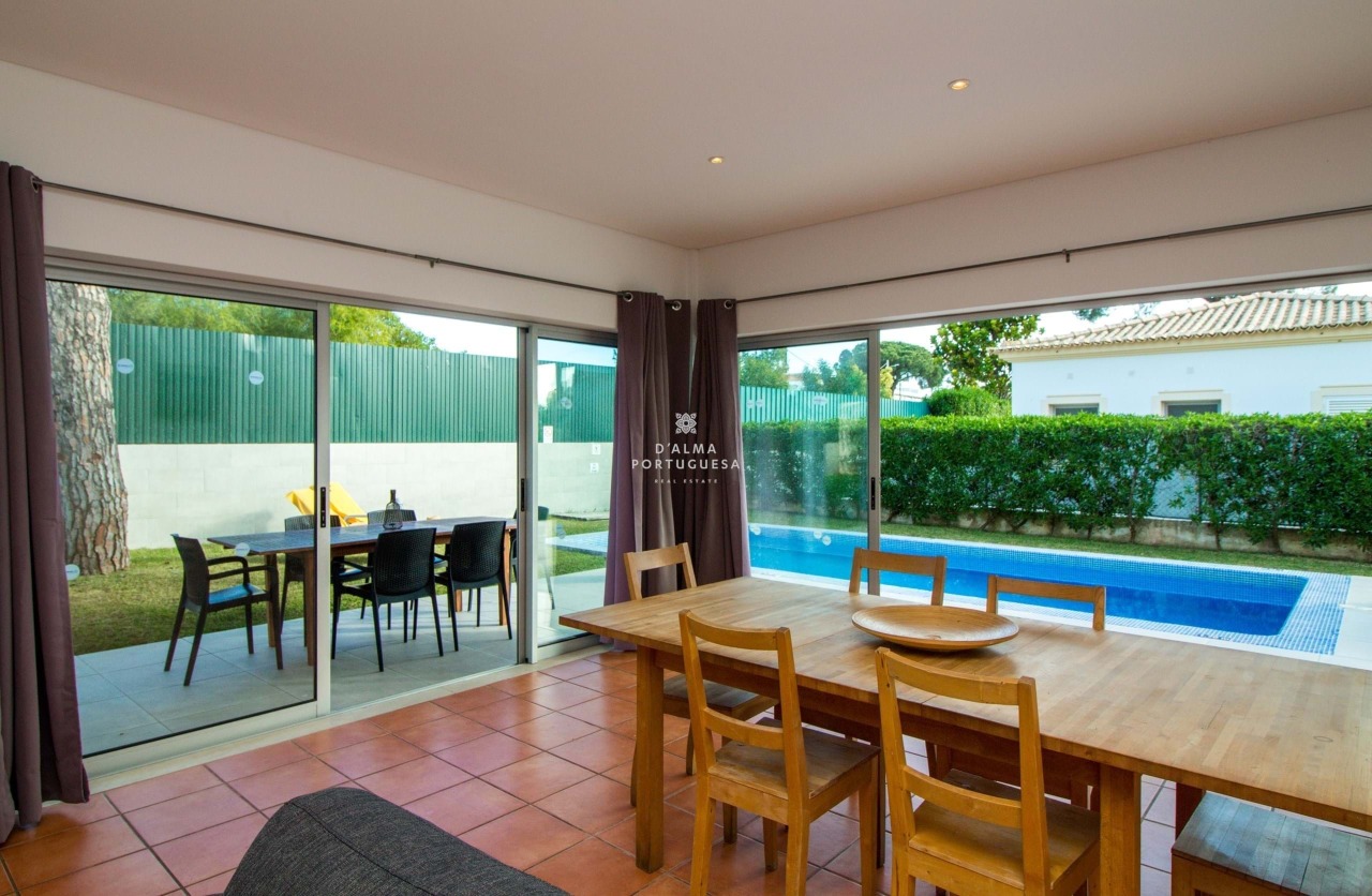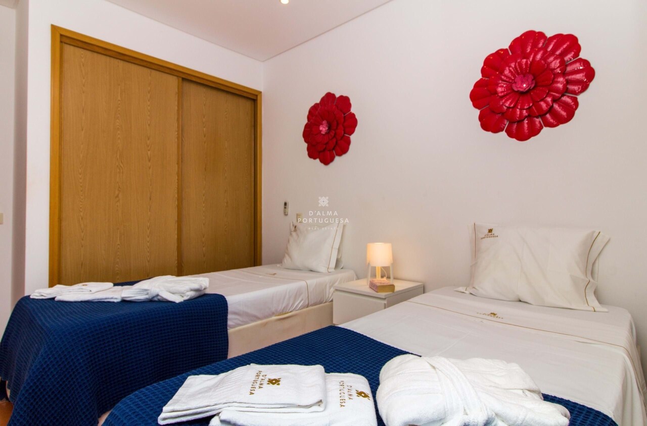 Enjoy the Algarve's mild climate in your private garden, relax by the pool or take a stroll to the beach, which is within walking distance. The property is fully furnished and equipped with air conditioning, providing year-round comfort.