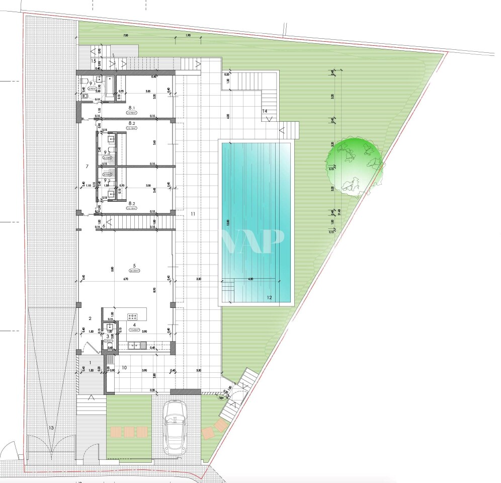 Outside this villa benefits from a private garden with swimming pool.