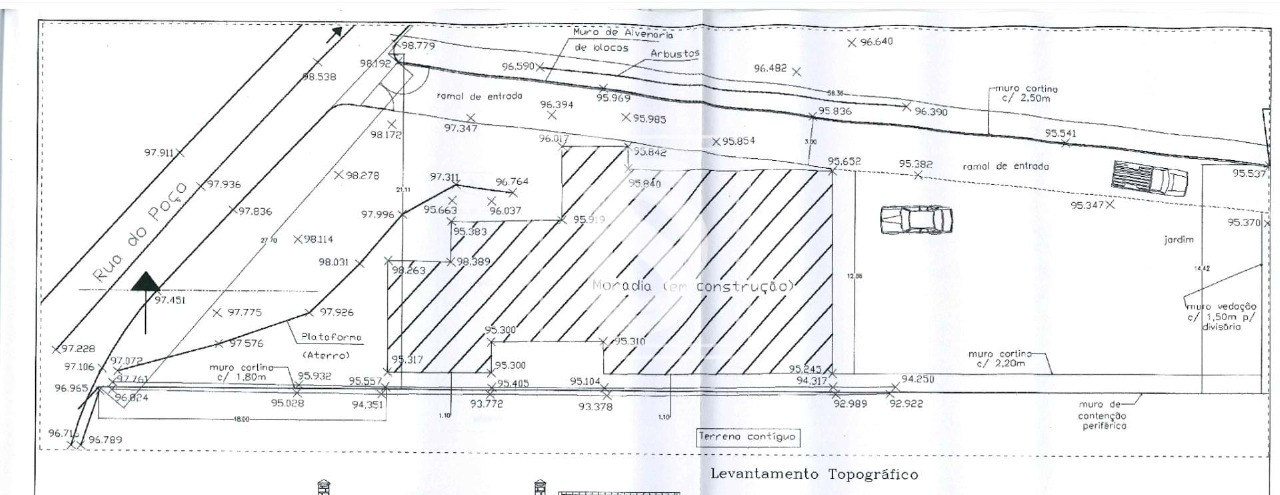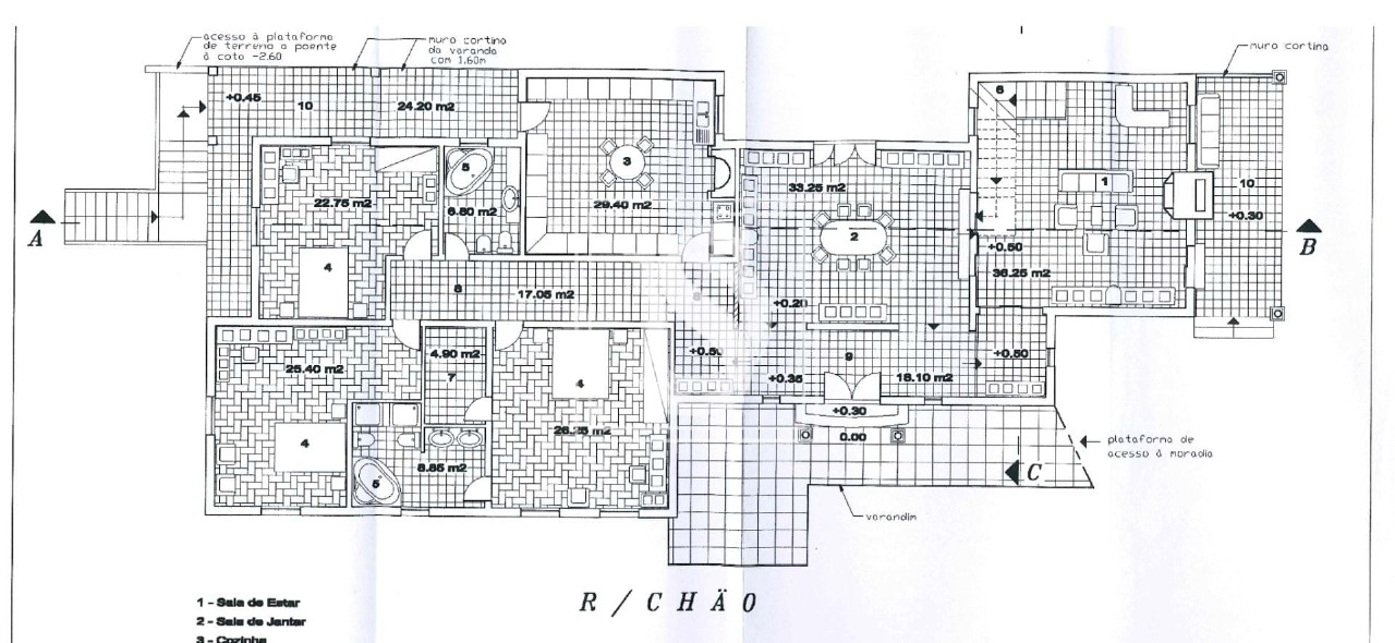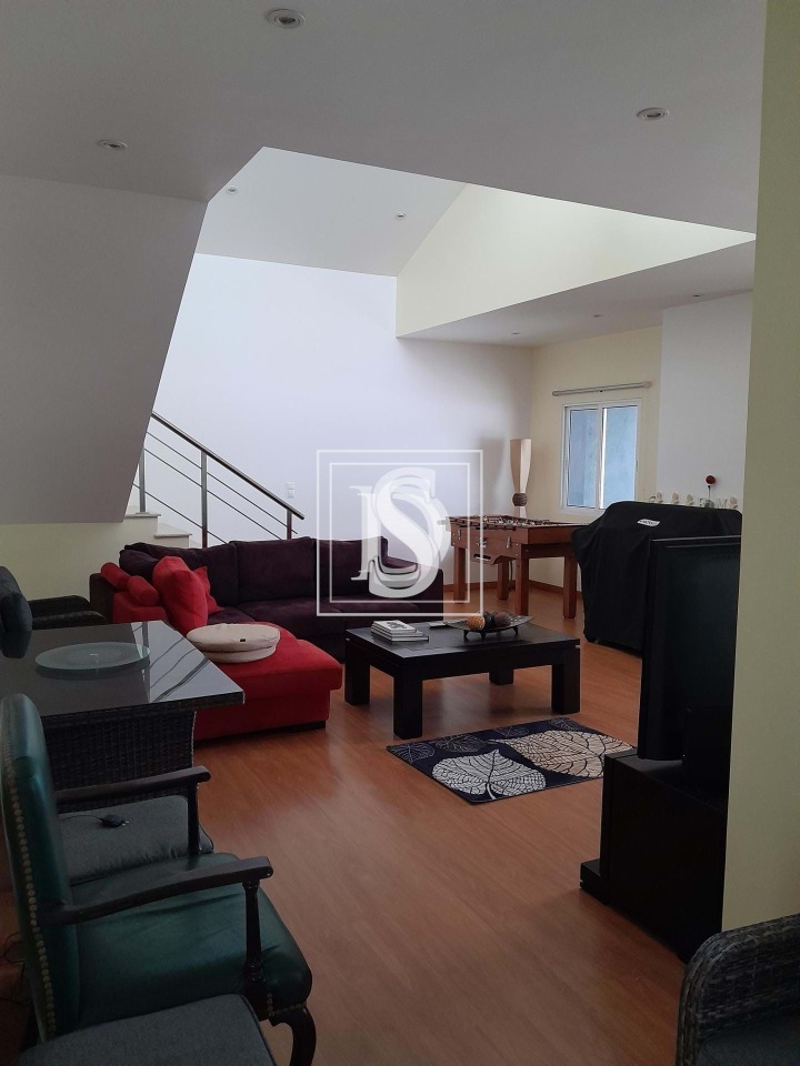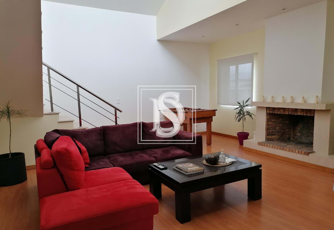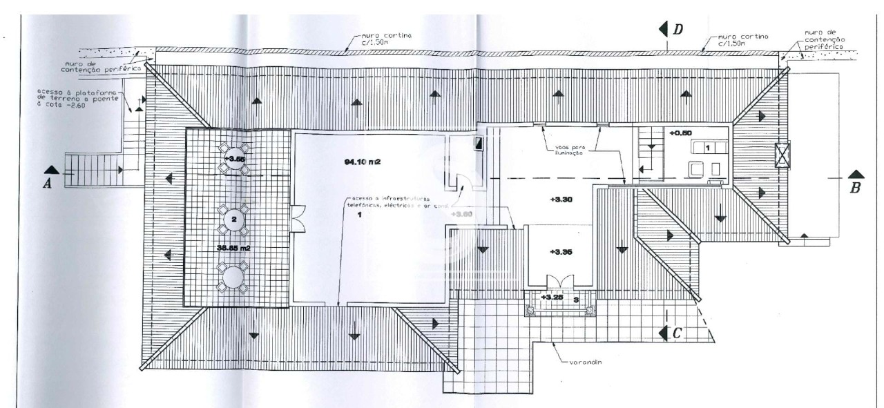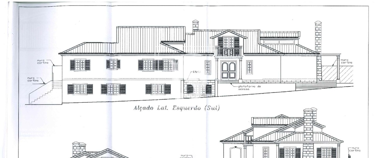 Floor at the level of the public road with 350 sqm with three bedrooms (two en suite), kitchen and laundry, dining room with wood burning stove, lounge with fireplace and access to the upper floor, and guest toilet.