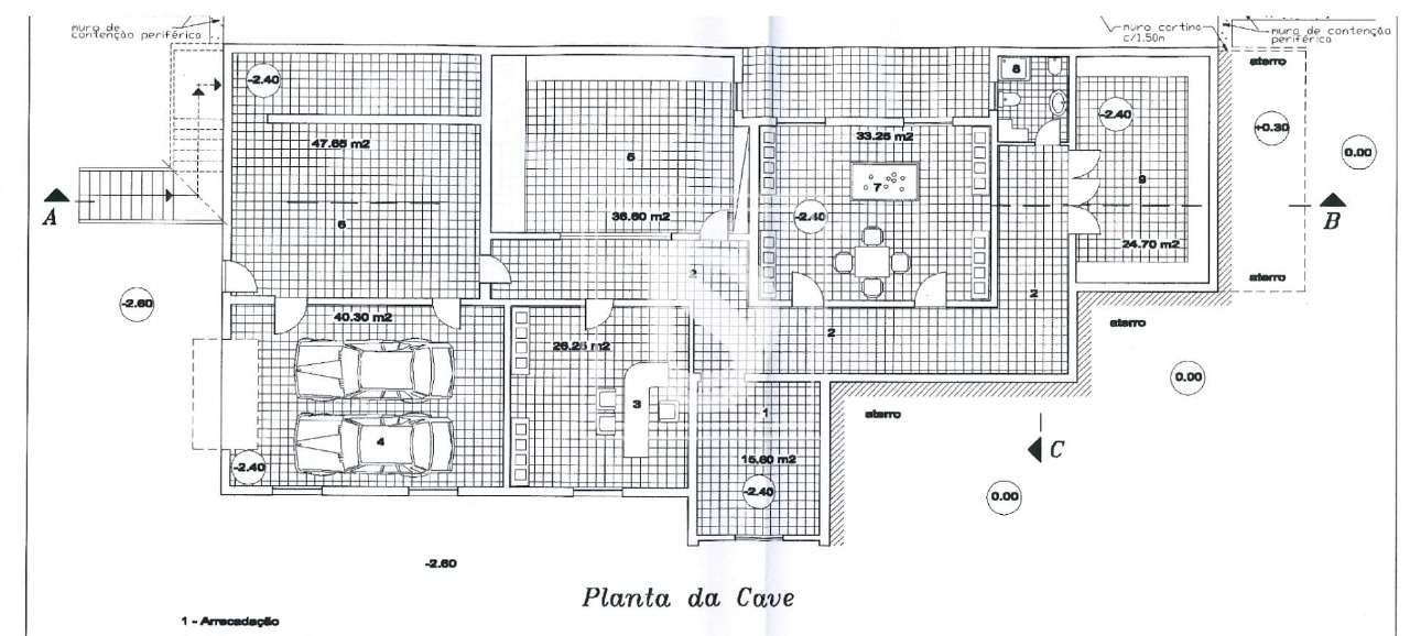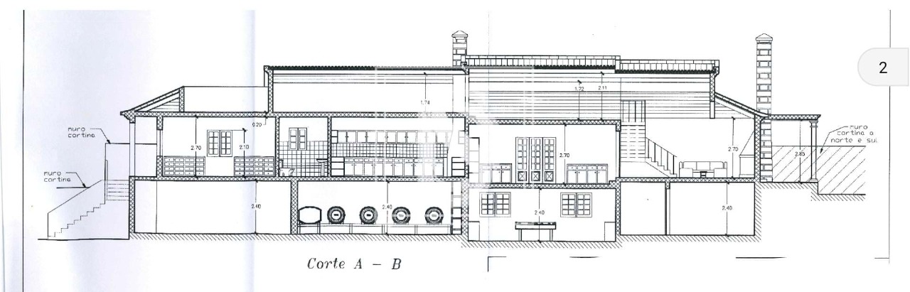 There is a 350 sqm basement, almost completely uncovered, with an expectant space and a garage for two cars.
