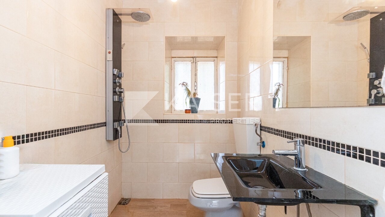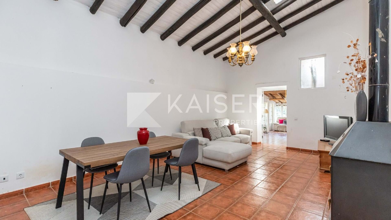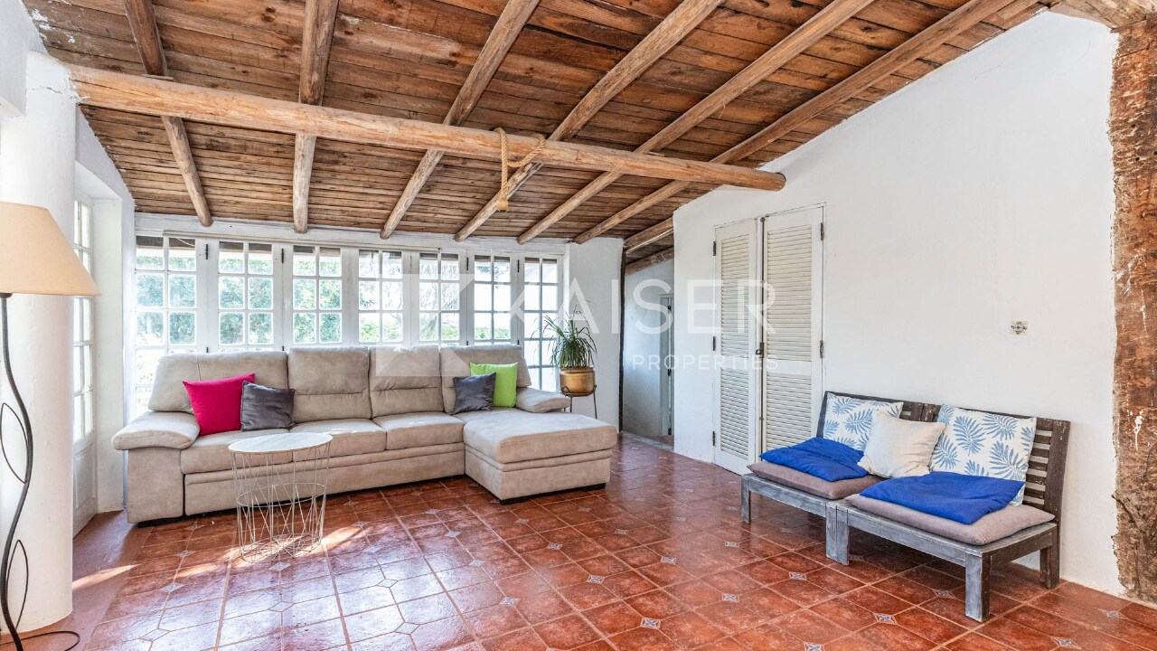 The villa, with its typical high ceilings with beams, comprises 2 spacious living rooms, one with a fireplace, kitchen, 3 bedrooms, 2 shower rooms (1 en-suite) and 1 bathroom.