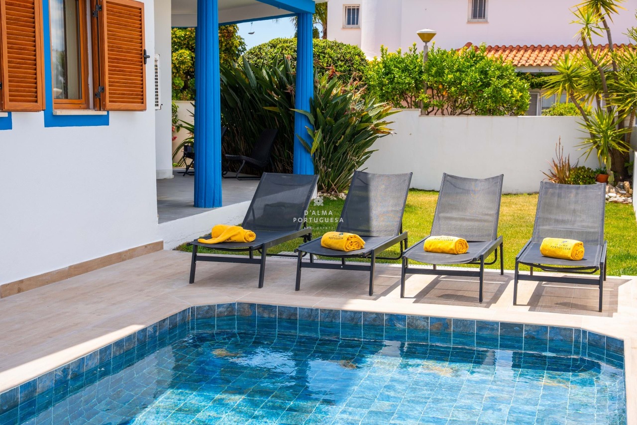 The Villa Girassol in Albufeira , Olhos de Água, has 4 bedroom(s) and capacity for 8 people(s). Accommodation of 149 m² cozy and fully equipped, with views of the garden and swimming pool. It is 120 m from the supermarket "Intermaché Torre da Medronheira", 600 m from the "Olhos de Água Beach", located in a quiet area with several restaurants and commerce. It features garden, garden furniture, barbecue, fireplace, iron, internet access (wifi), hair dryer, balcony, air conditioning throughout the accommodation, private swimming pool, outdoor parking in the same building, satellite TV (Languages: English). The kitchen is independent, self-driving, equipped with refrigerator, microwave, oven, freezer, washing machine, dishwasher, crockery cutlery, utensils kitchen, coffee maker, toaster and kettle. - REF: Al-174