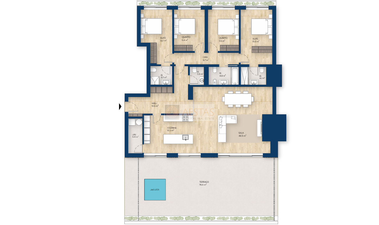 New 4-bedroom apartment, which stands out for its large and balanced spaces, consisting of 4 bedrooms with built-in wardrobes, 2 of them en suite, 2 complete bathrooms, fully equipped kitchen with Bosch appliances and an open space living room, connected to a balcony, with panoramic views of the city of Porto and the Douro river.