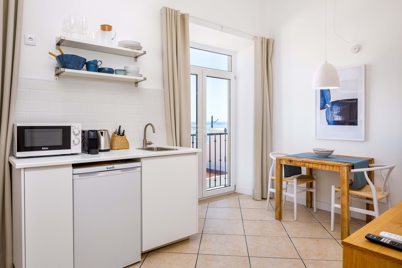 A shady front terrace ideal for outside entertaining - offers some sea views and leads do the 2 studios on the ground floor of the two-storey building as well as to one lockable storage utility room hosting the hot water storage heater. A separate entrance to the side of the building leads to a corridor with practical fitted storage cupboards and to two more studios on the first floor, one of which with a Julia balcony and both with high ceilings and stunning views of the Atlantic Ocean. All studios are en-suite and furnished with a small kitchenette, breakfast table and lounge area. Great investment! - REF: CASA4YOU