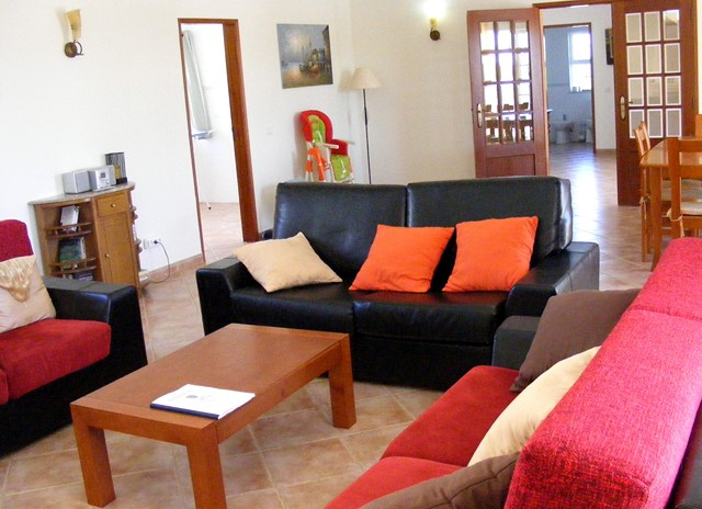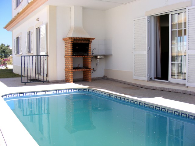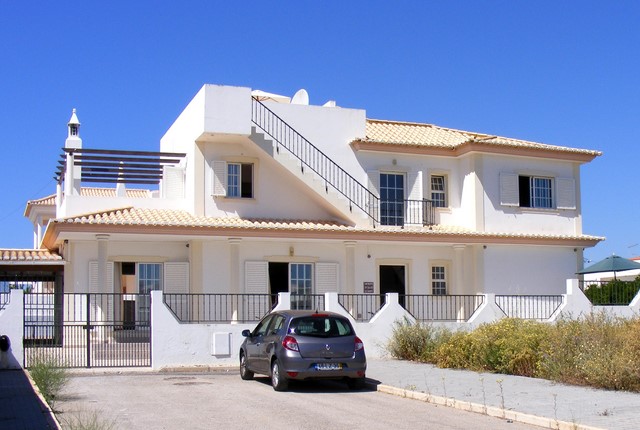 Large four bedroom / three bathroom villa with swimming pool and garden, located in easy walking distance to the waterfront of Fuzeta in the Eastern Algarve. The two-storey property sits on a fully fenced plot of land and consists of an entrance hall with bathroom, a large living room with wood burning stove and integrated dining area, a kitchen with adjacent utility room, a double bedroom with built-in wardrobes. A staircase with wooden banister leads to the first floor comprising of the large Master bedroom with dressing area, en-suite bathroom and terrace, in addition to two double bedrooms sharing a bathroom. The staircase continues to the roof terrace offering views of the sea. The 7m x 3m swimming pool and the garden with nice lawn areas invite to enjoy an afternoon in the sunshine. The property benefits from a carport, double glazing, security shutters, partly air-conditioning, an alarm system and telephone connection. Mains electricity, mains water and drainage.