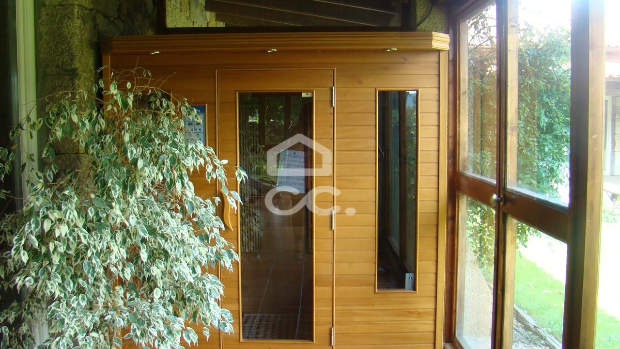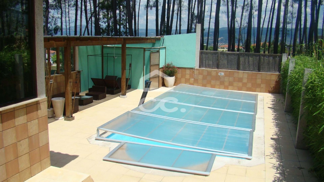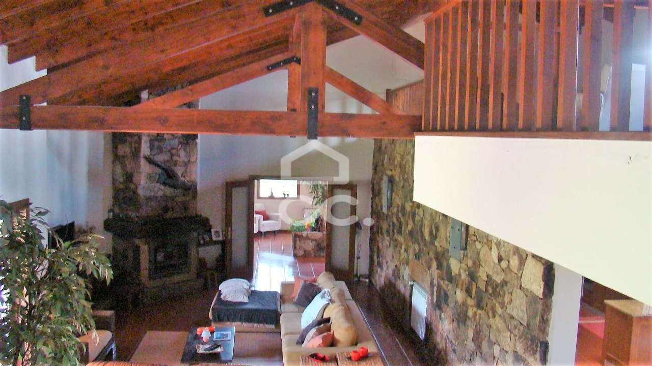 Chalet House V4 +1, all suite rooms and wardrobes, all of them having access to the garden. Full central heating, outdoor pool. Sauna, jacuzzi, surrounding land with an area of 3400m2 with a well and lake. Garage for several cars. Stone walls 0.5 meters wide.