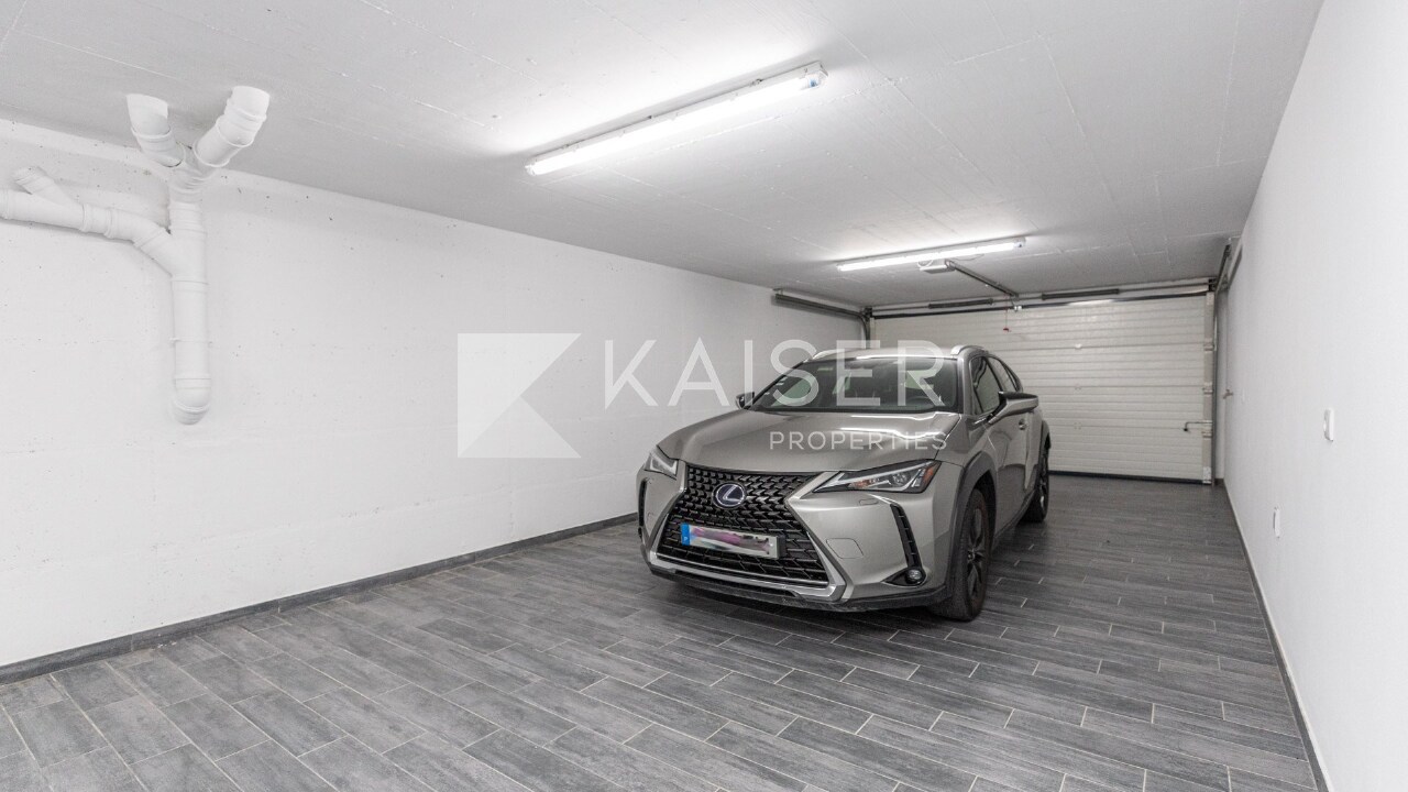 Basement: Spacious garage for 3 vehicles and a storage room.