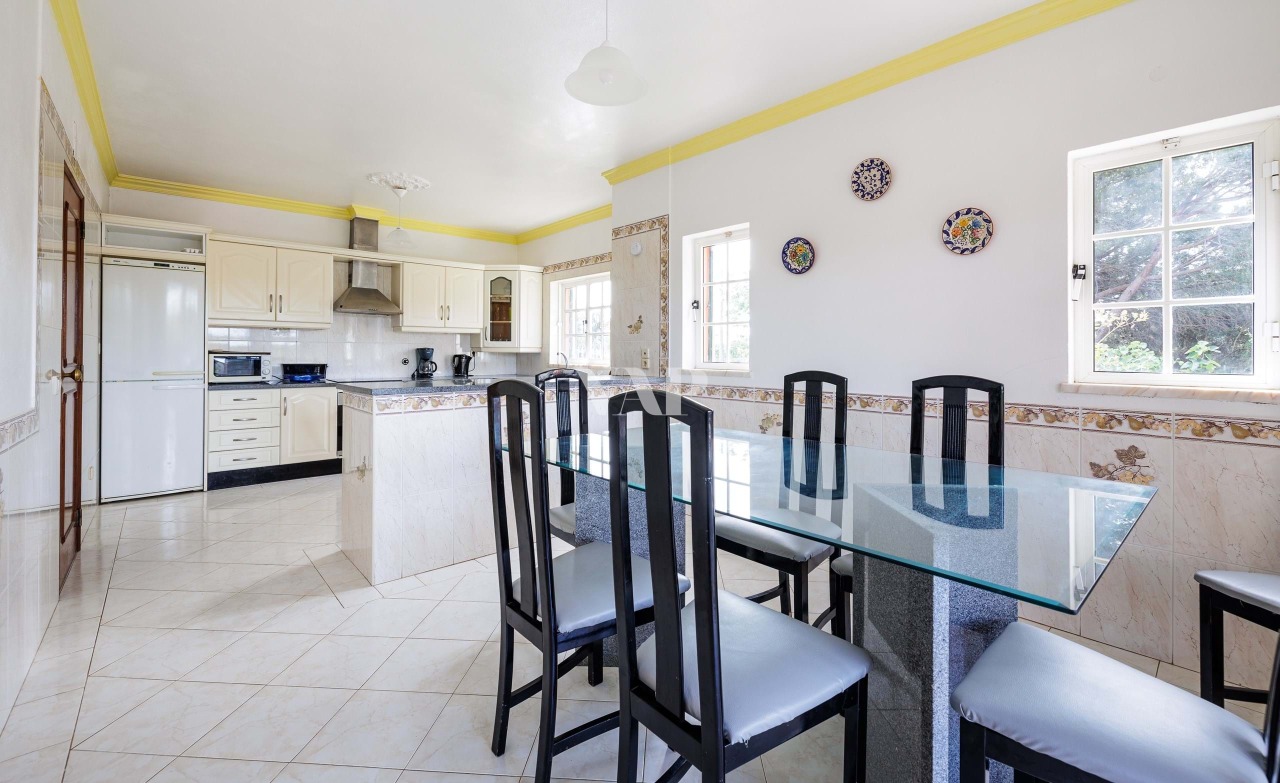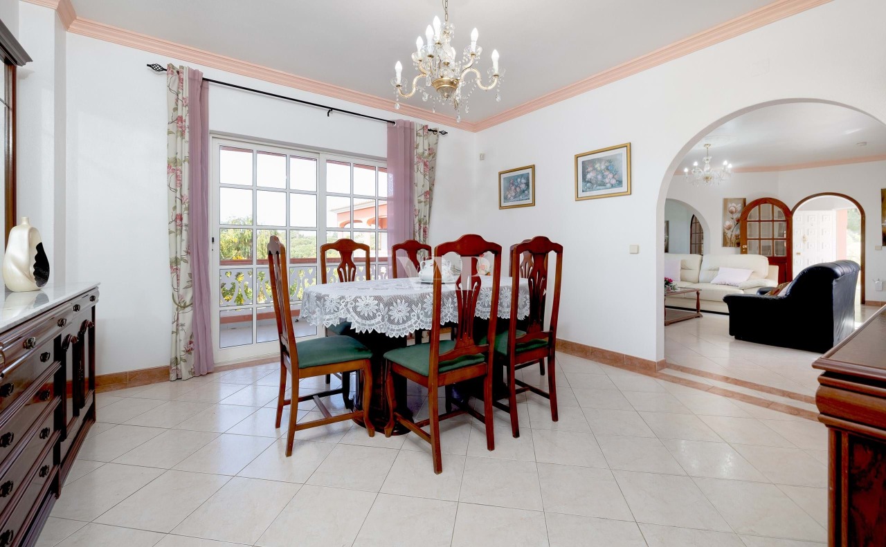 The house also has a traditional dining room with direct exit to the veranda, which offers stunning views over the surrounding green area.