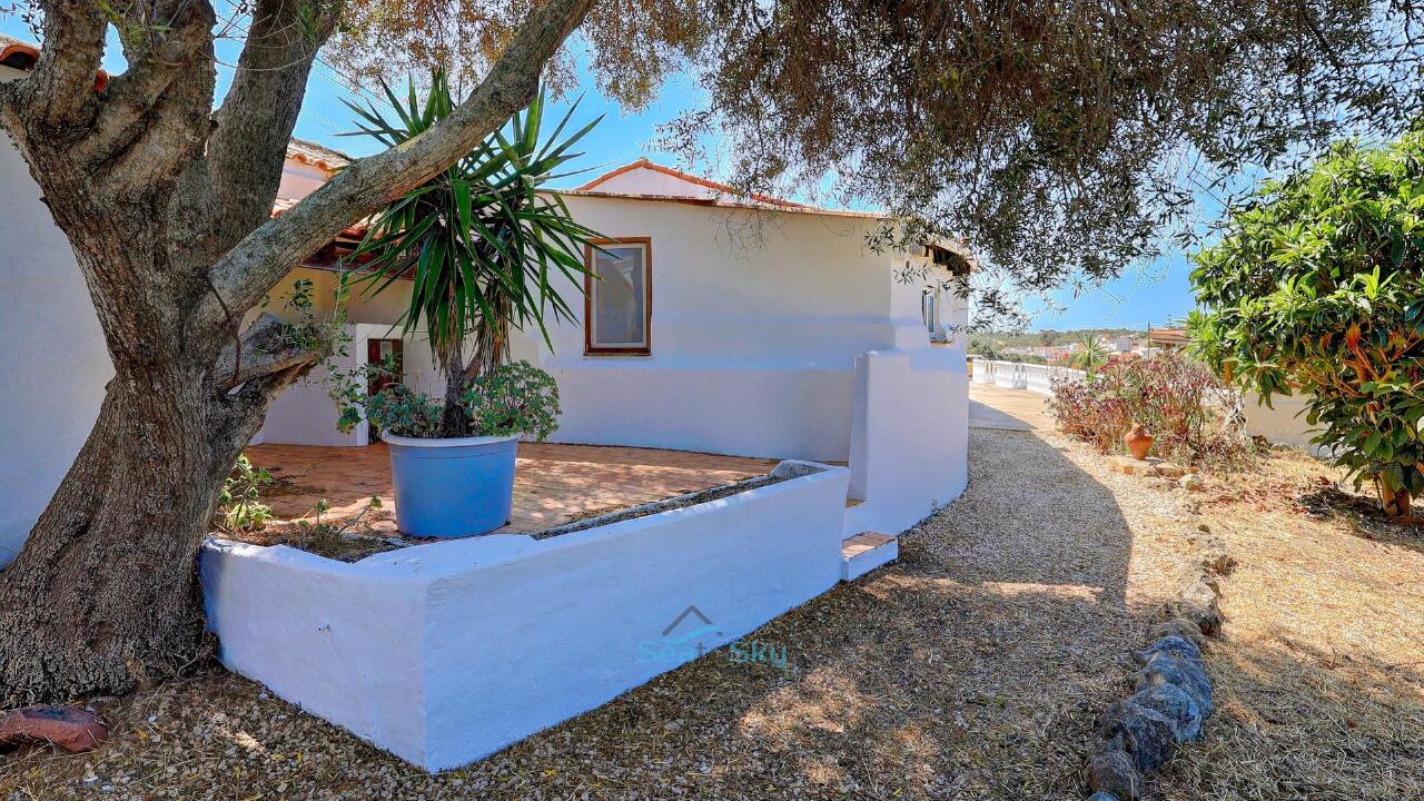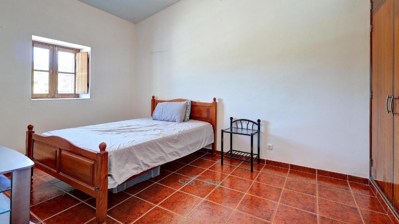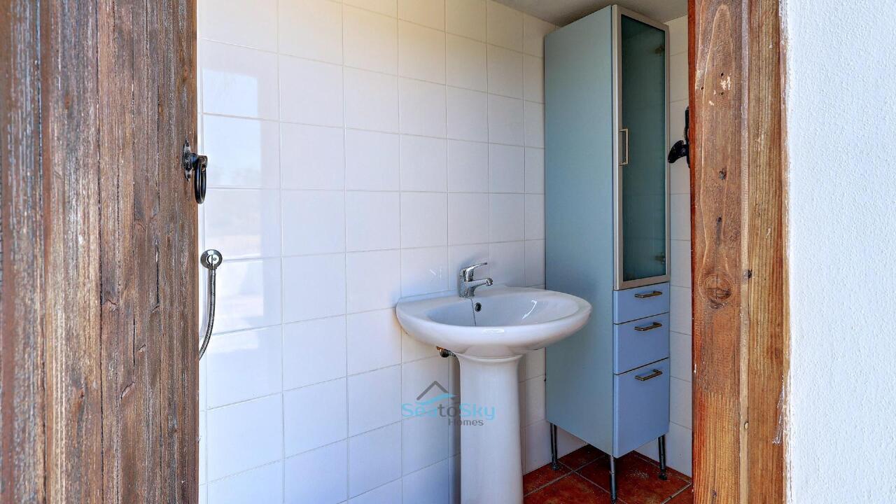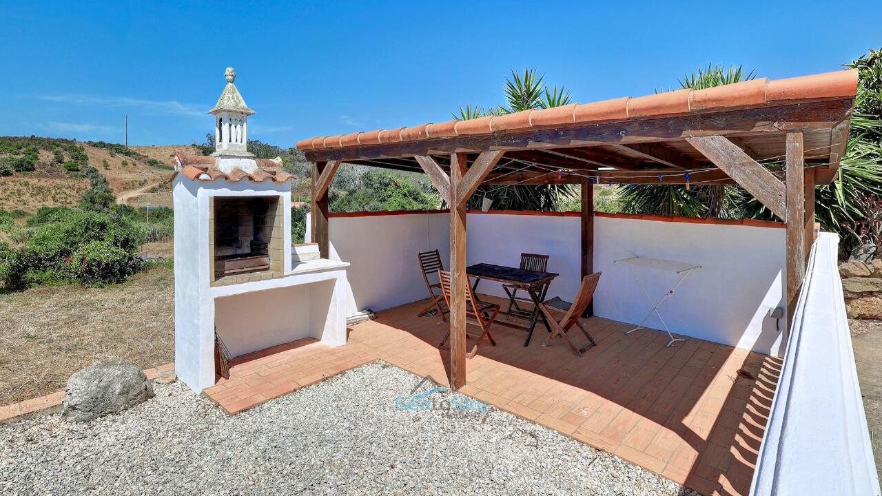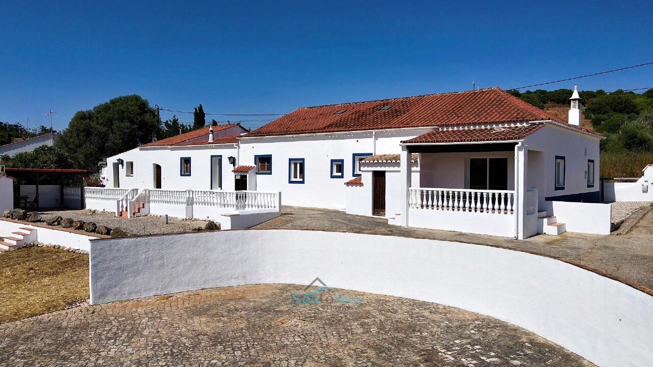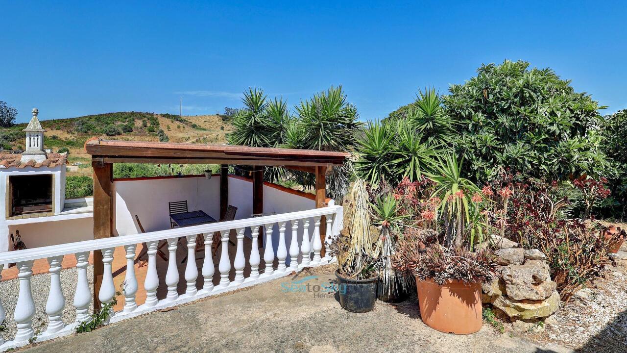 The spacious main house comprises an entrance hall with beautiful ornate doors, 3 bedrooms, 2 bathrooms (1 en-suite) and a wonderful open-plan living room with kitchen and dining area. There's a log burner, with back-boiler linked to radiators, heating the whole house. The kitchen boasts an island with breakfast bar with seating for 4 people. High wooden ceilings plus a large ceiling fan keep this room beautifully cool even in the hot summer months. There's a large loft space too, accessed via a hatch with a folding drop-down ladder in the hallway. The flooring is the traditional terracotta Santa Catarina tiles, perfect for the Algarve climate. There's a wonderful covered terrace to the rear, over-looking the land to the countryside beyond.