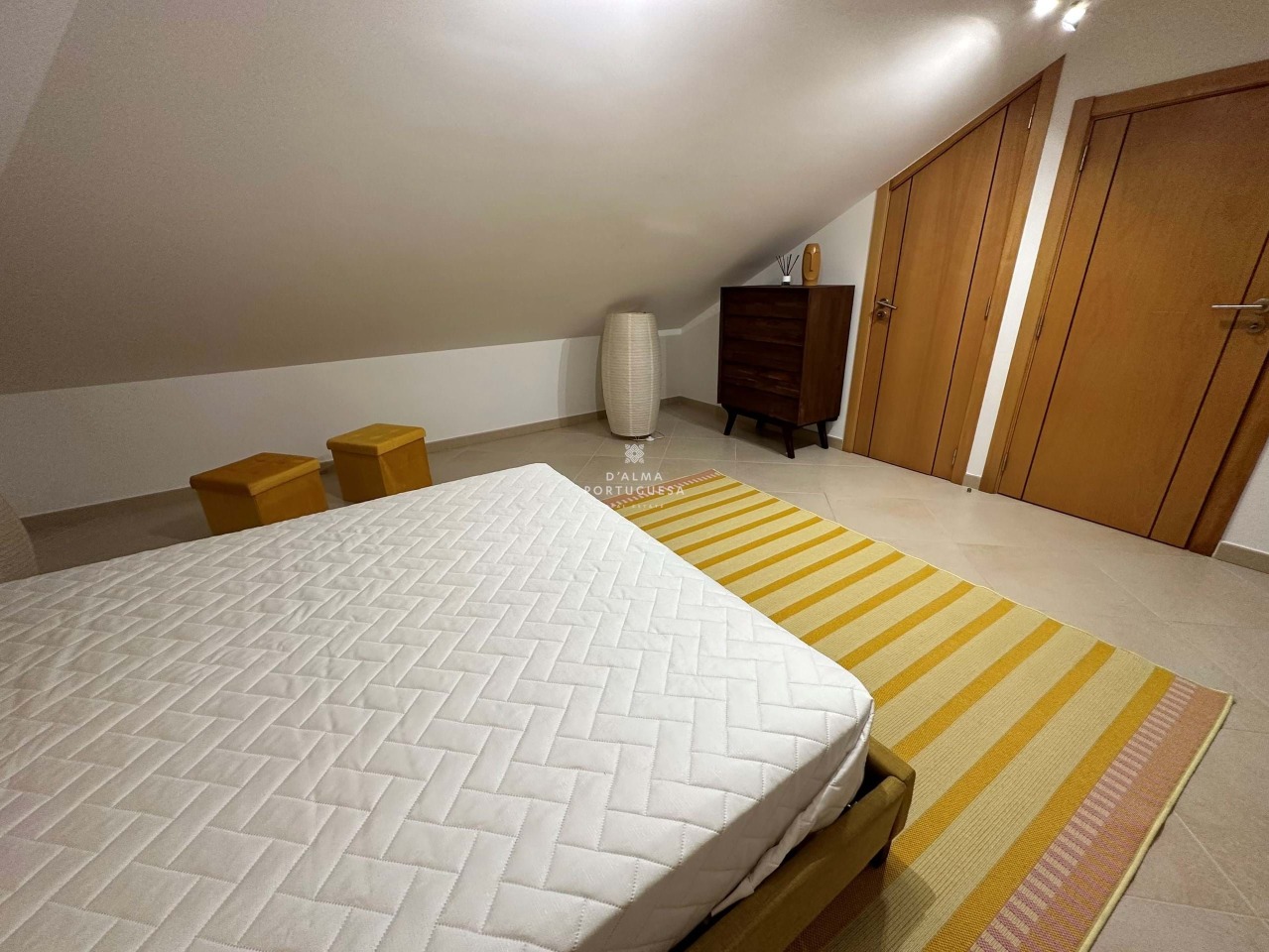 In the attic, a bedroom with Velux skylight, AC and bathroom.