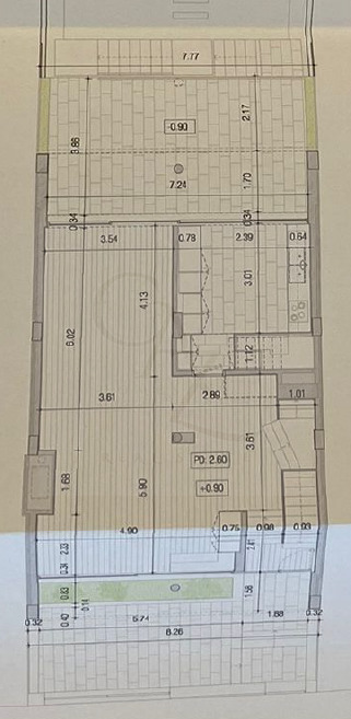 Floor 0: Entrance and hall, kitchen, living room and dining room (44m2), terrace