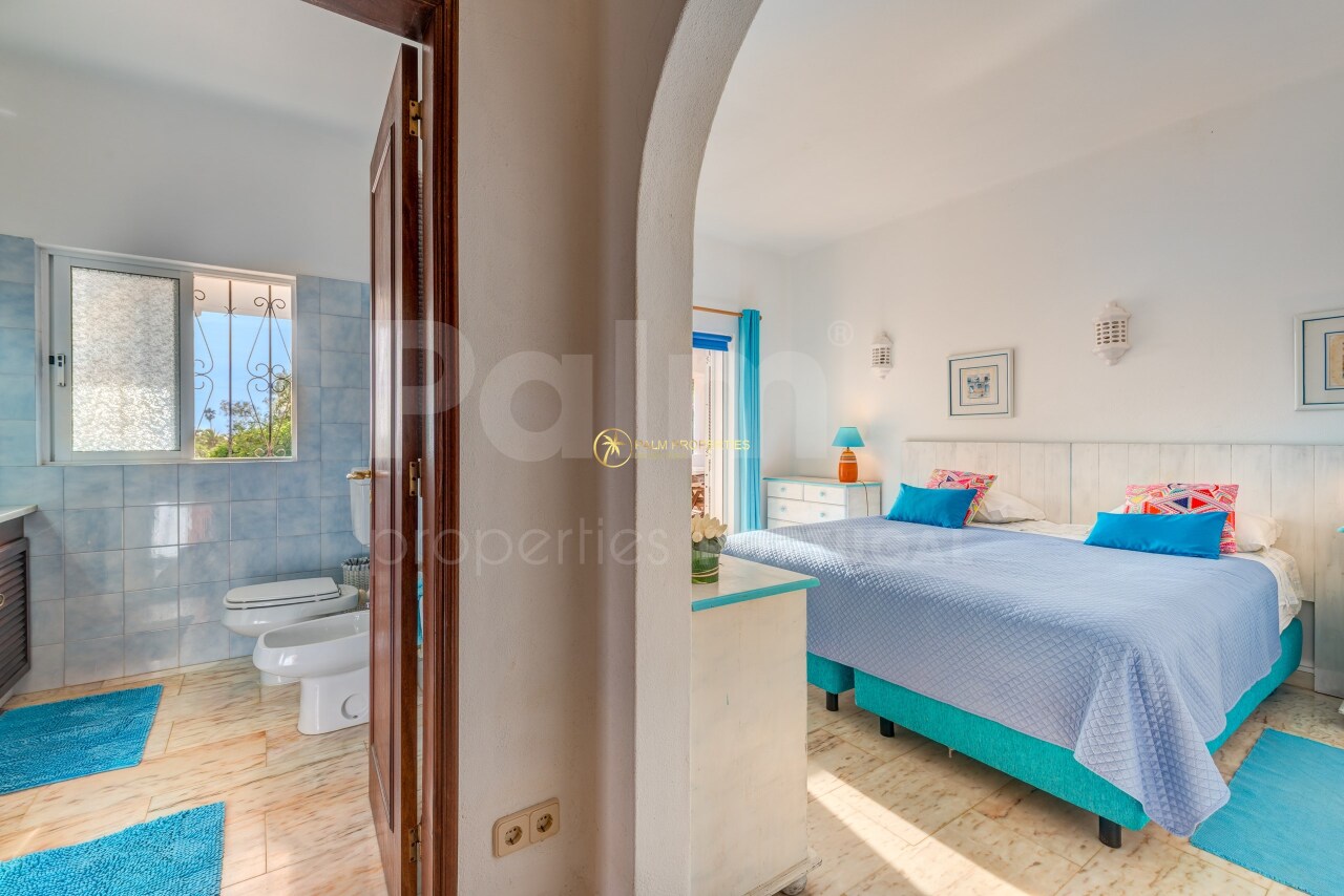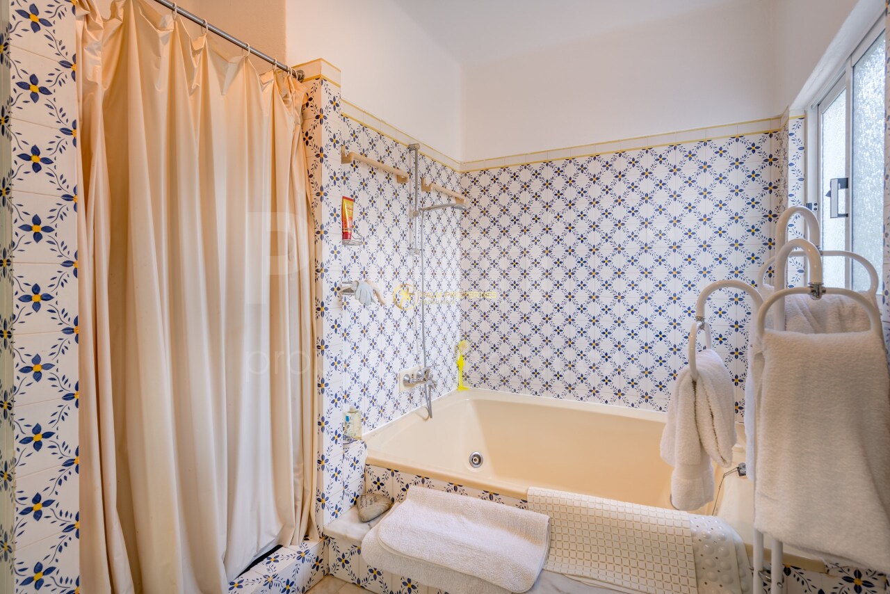 With 480 m² of built space, the villa spans two levels plus an independent guest annex. The ground floor features a bright entrance hall leading to spacious living and dining areas, fully furnished and complemented by a fireplace. Large windows overlook the lush gardens, creating a seamless indooroutdoor flow. The fully equipped kitchen serves both the interior dining room and the outdoor BBQ terrace. This level also includes seven ensuite bedrooms, carefully arranged around the main living areas, along with two guest WCs. Central heating and air conditioning ensure comfort throughout the year.