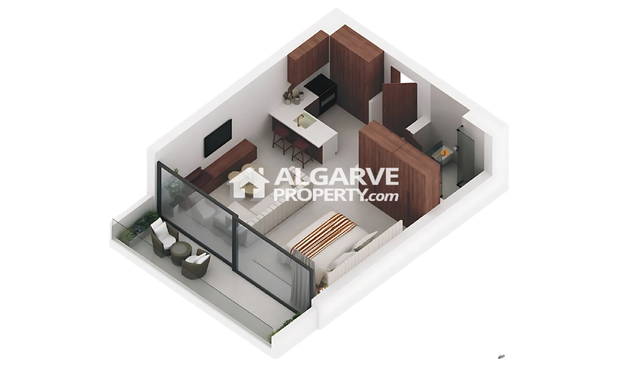 Studios: Designed for versatility and comfort, the studio apartments offer a variety of configurations. Many include balconies, perfect for enjoying the warm Algarve climate (A11-A40, A43-A50, B1-B8). For those seeking more outdoor space, some studios come with private gardens (A4-A7, B9-B16) or rooftop terraces with Jacuzzis (A53-A56, A61-A64).