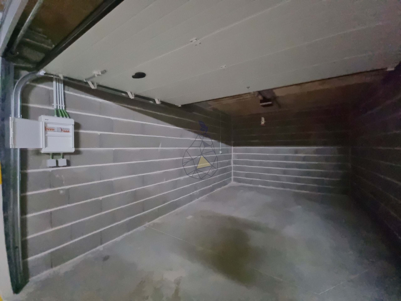 Ceilings in exposed concrete, gray color, without finishing; Floor in smoothed concrete, gray color, without finishing; Concrete block walls, visible joints, gray color, without finishing; Automated electric sectional gate, exclusive to boxing; Electrical panel with power supply for the gate, two single-phase sockets and reserve for future connection of electric vehicle chargers; Switch with ceiling lighting; Smoke sensor interconnected with the general garage fire detection system.