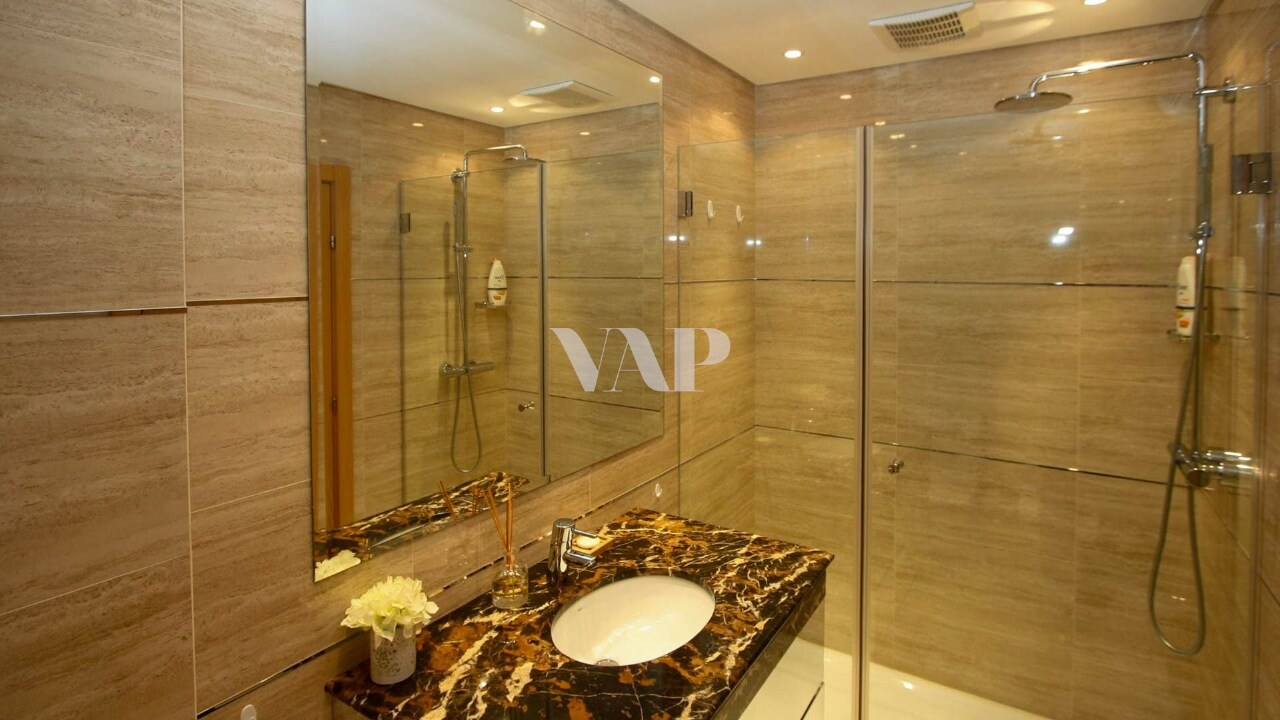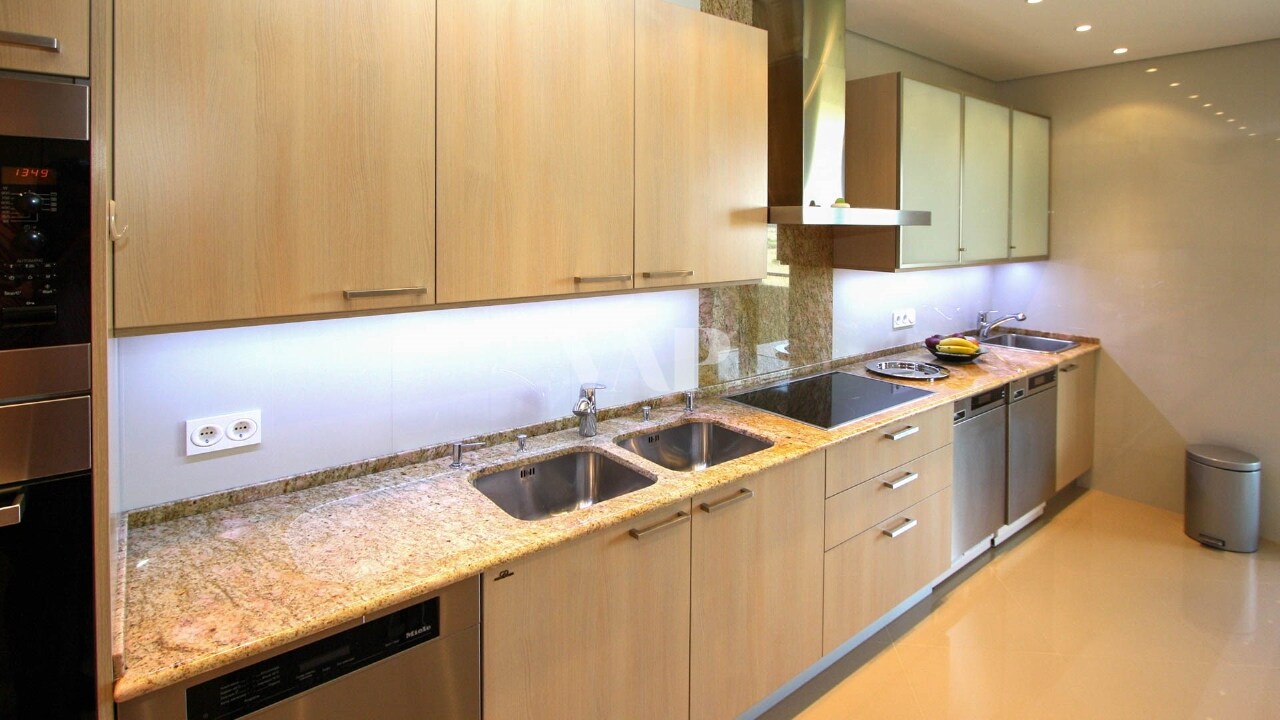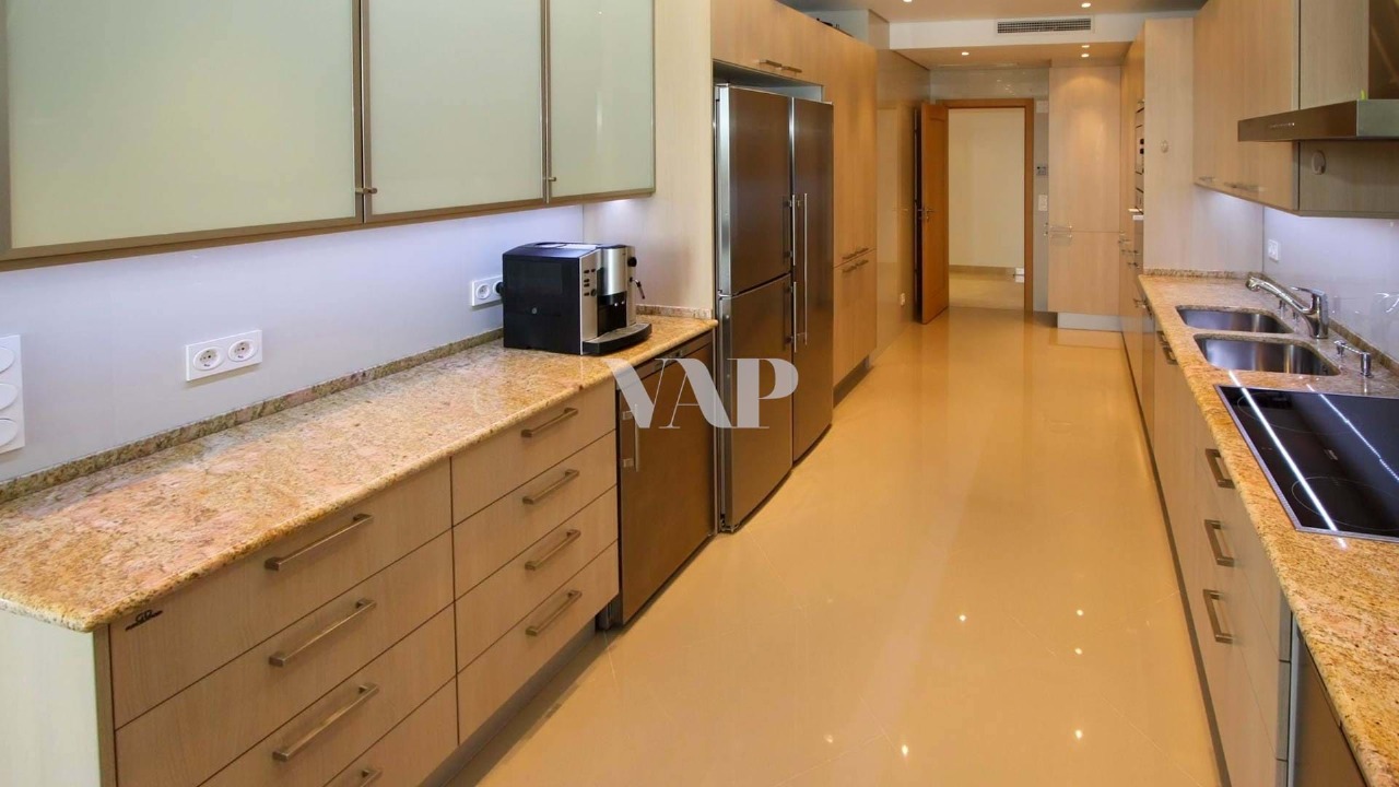 Fully equipped kitchen with marble countertop and a wide range of appliances, 3 en-suite bedrooms with balcony, the master bedroom has a magnificent dressing room and a service bathroom.