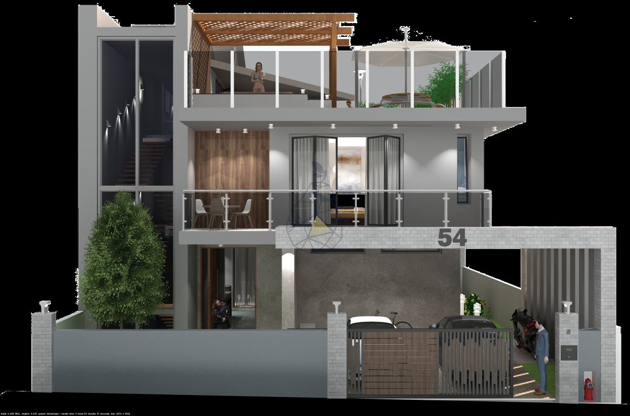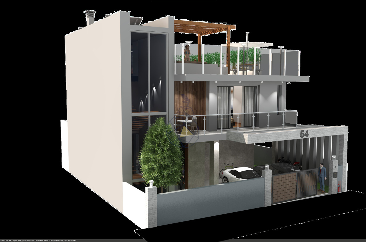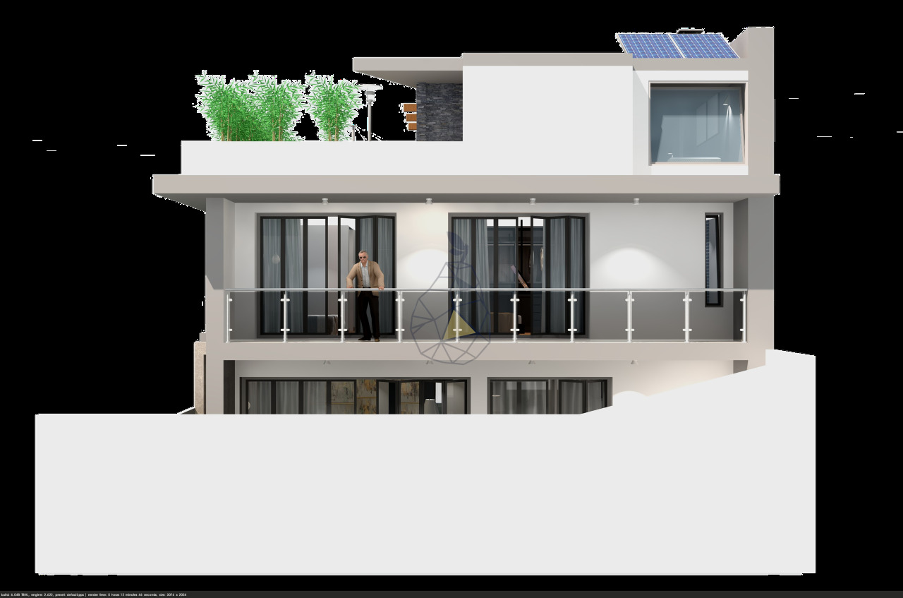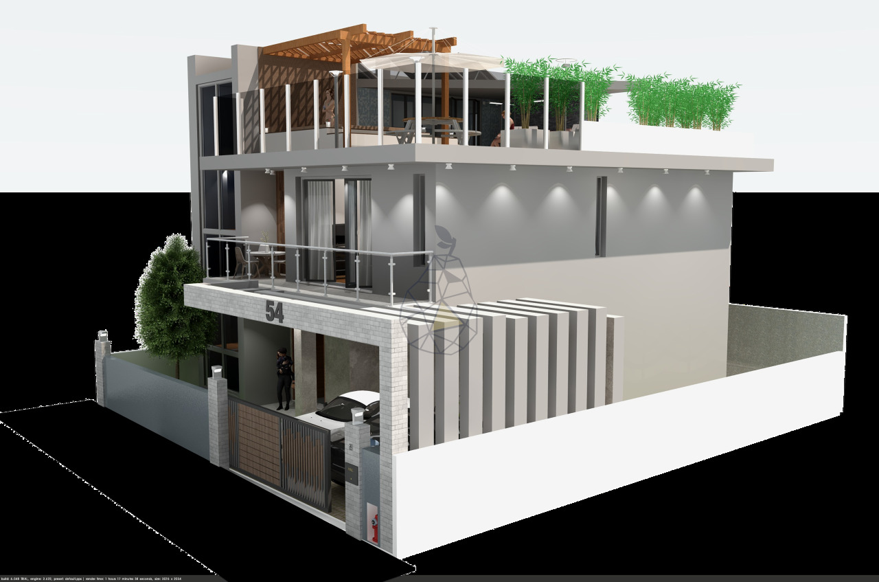 House, on the ground floor will consist of kitchen, living room, open space and social bathroom. 1st floor, will consist of 3 suites.